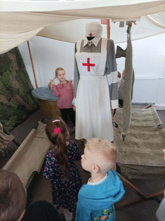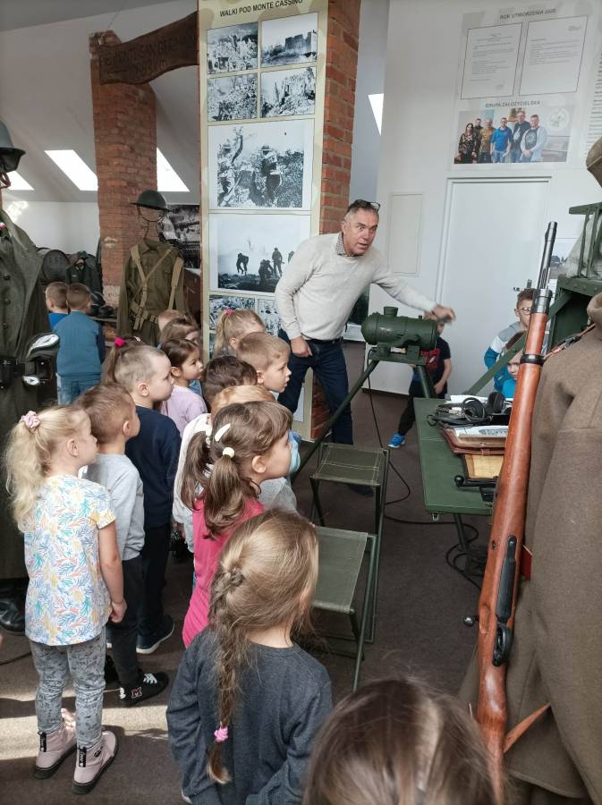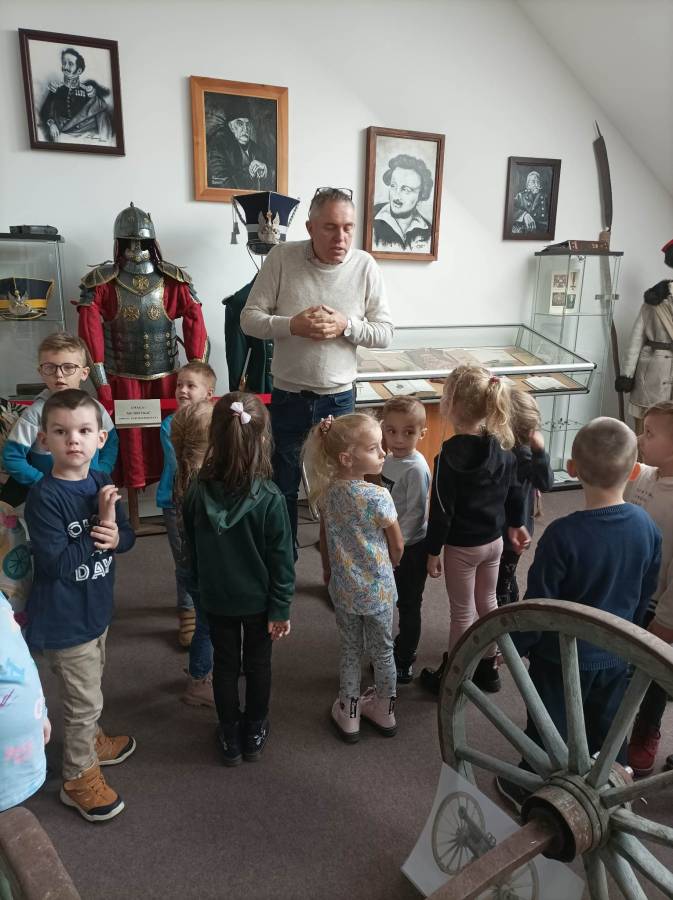 10 listopada dzieci z grupy Tygryski, Gumisie oraz Skrzaty wybrały się do Izby Tradycji w Urzędzie Gminy Ceków. Na miejscu przedszkolaków przywitał pan Janusz Nowak, który oprowadził zgromadzonych po Izbie Tradycji. Opowiadał ciekawe historie o eksponatach znalezionych na terenie naszej gminy oraz o mieszkańcach gminy, którzy uczestniczyli w walkach o niepodległość naszego kraju. Dzieci miały okazję przyjrzeć się oryginalnym pamiątkom, artefaktom z odległej przeszłości a także replikom oraz oryginalnym mundurom żołnierzy z okresów różnych wojen.