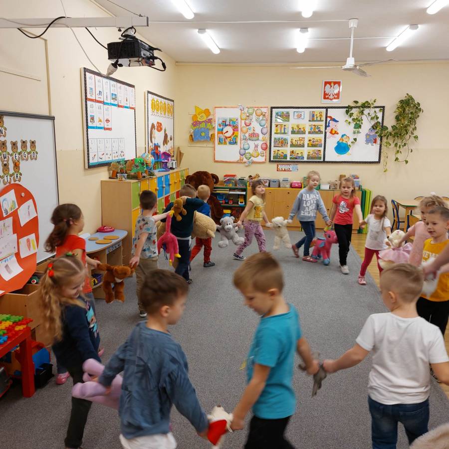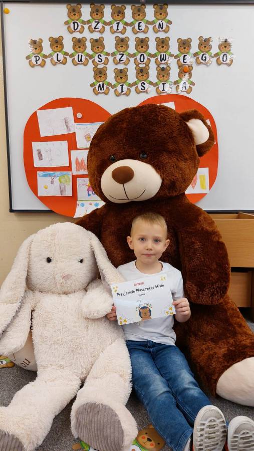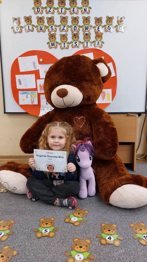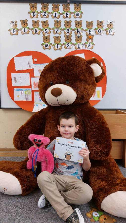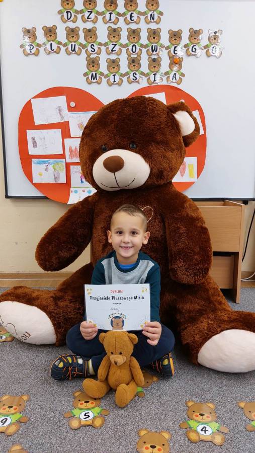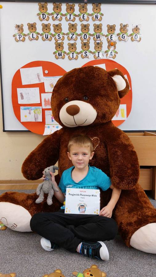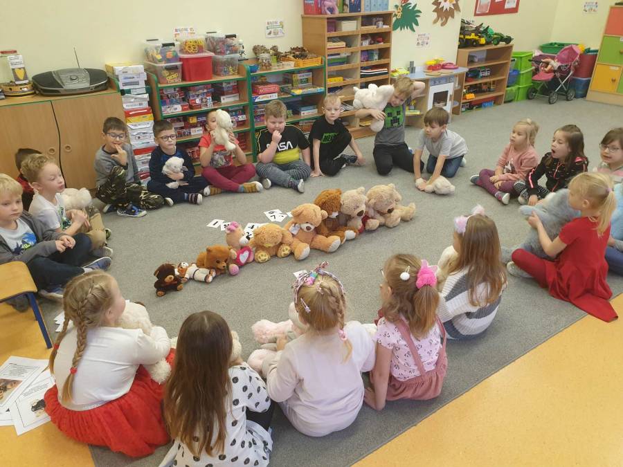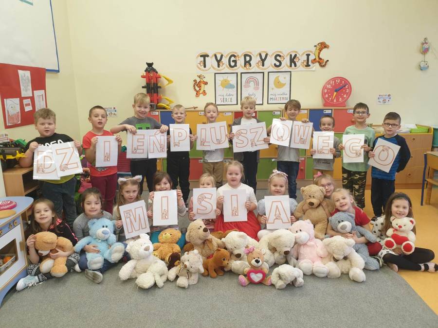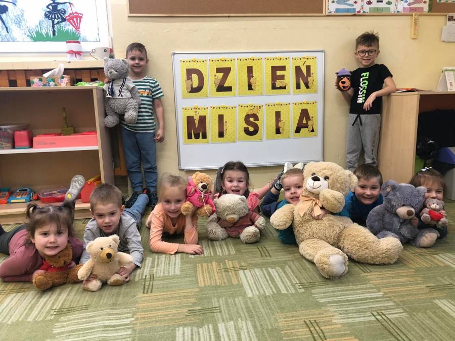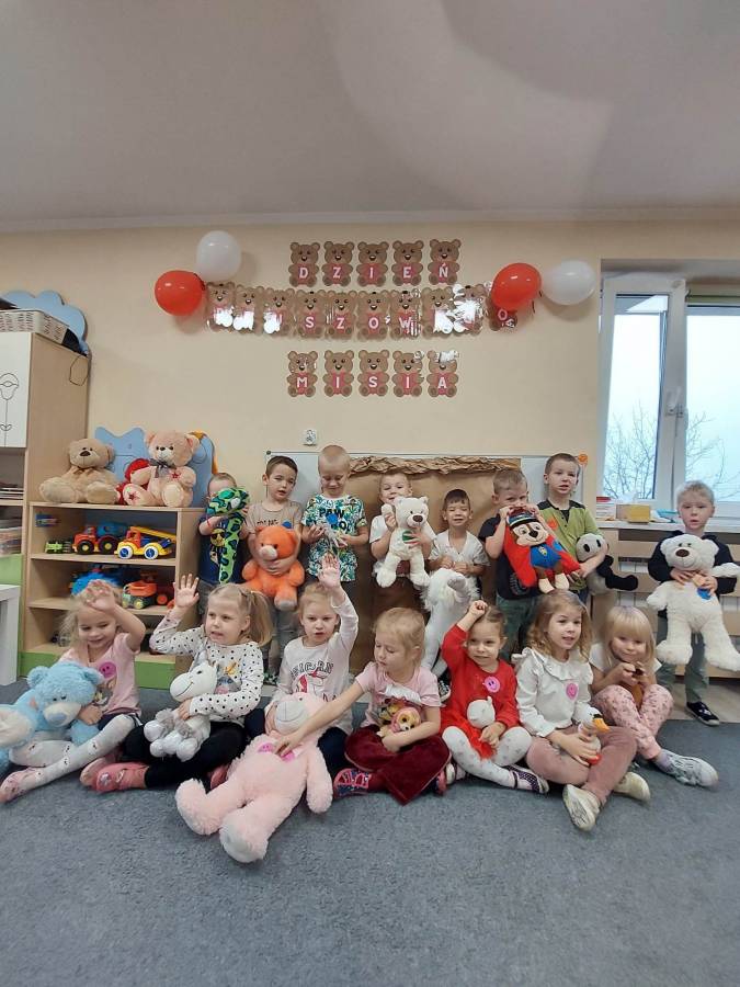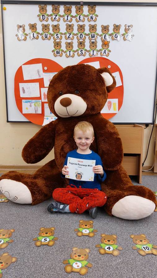 Dzień Pluszowego Misia w przedszkolu Pluszowy miś to najlepszy przyjaciel każdego dziecka, ukochana maskotka na dobre i złe chwile. Można go przytulić, a nawet powiedzieć mu o czymś bardzo ważnym. O święcie tej postaci nie zapomniały  dzieci z naszego przedszkola. Każdy przedszkolak przyniósł swojego ukochanego pluszaka. Spotkały się misie małe, średnie i duże, brązowe, szare, różowe, a każdy był kochany, uroczy i wyjątkowy. Dzieci poznały historię Święta Pluszowego Misia, oglądały bajki, bawiły się przy piosenkach: ?Pluszowy Miś?, ?Ja jestem niedźwiadek?, ?Dwa malutkie misie", ?Jadą, jadą misie", brały udział w zabawach ruchowych, konkursach, quizach, zgadywankach i  wykonywały prace plastyczne. Dzień Pluszowego Misia w naszym przedszkolu był pełen uśmiechu i świetnej zabawy. Dzieci były szczęśliwe, że mogły spędzić tyle czasu ze swoimi ukochanymi misiami oraz pokazać je koleżankom i kolegom. Mamy nadzieję, że to misiowe spotkanie zostanie w pamięci dzieci na długo.