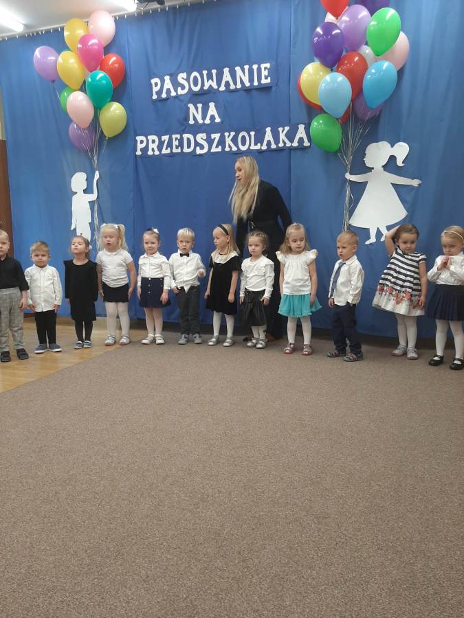 W piątek 18 listopada w naszym przedszkolu odbyło się pasowanie na przedszkolaka. Prawdziwymi przedszkolakami zostały dzieci z grupy ?Smerfy?, "Krasnale" oraz ?Gumisie?, które dopiero rozpoczęły przygodę z przedszkolem. W uroczystości udział wzięli zaproszeni rodzice oraz pani Dyrektor. Dzieci zaprezentowały zebranym gościom program artystyczny, który zachwycił zebranych gości. Występując po raz pierwszy przed tak liczną publicznością, dzieci wykazały się nie tylko swoimi umiejętnościami, ale także dużą odwagą. Punktem kulminacyjnym było pasowanie poprzez symboliczne położenie kredki na ramieniu dziecka, którego dokonała pani Dyrektor.  Rodzice również  złożyli specjalne ślubowanie. Po części artystycznej na naszych przedszkolaków czekał słodki poczęstunek. Na pamiątkę tego ważnego dnia dzieci otrzymały dyplomy oraz upominki.