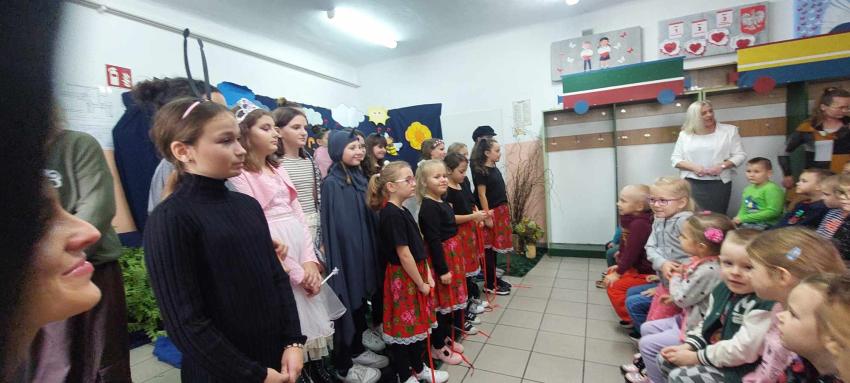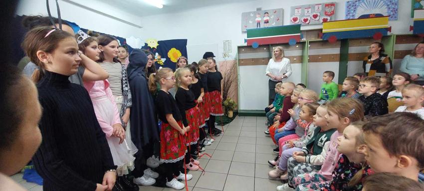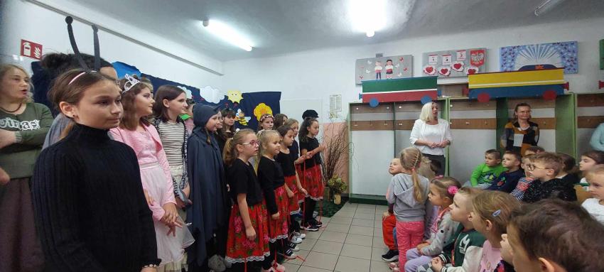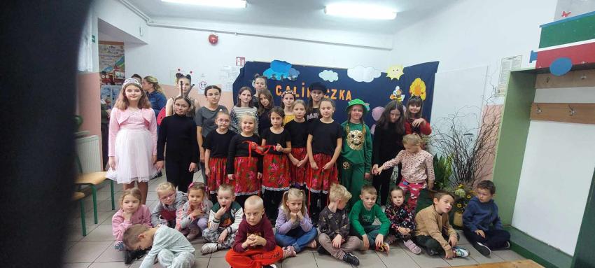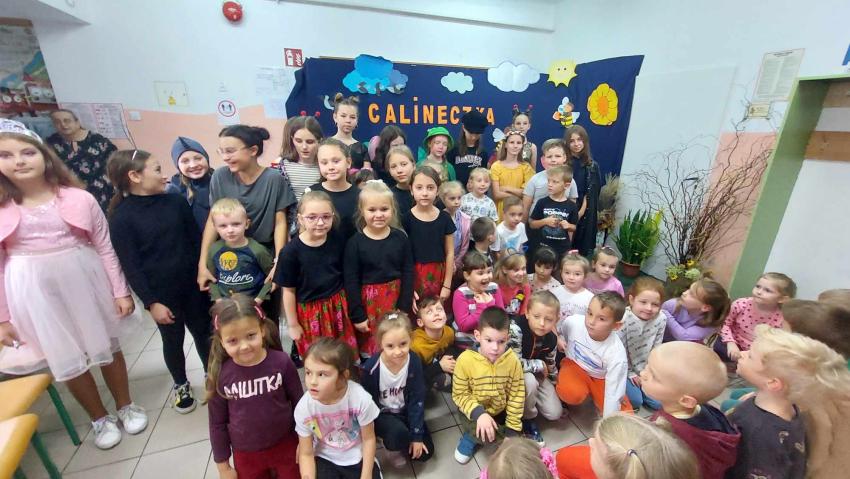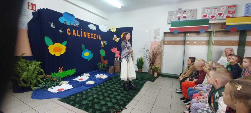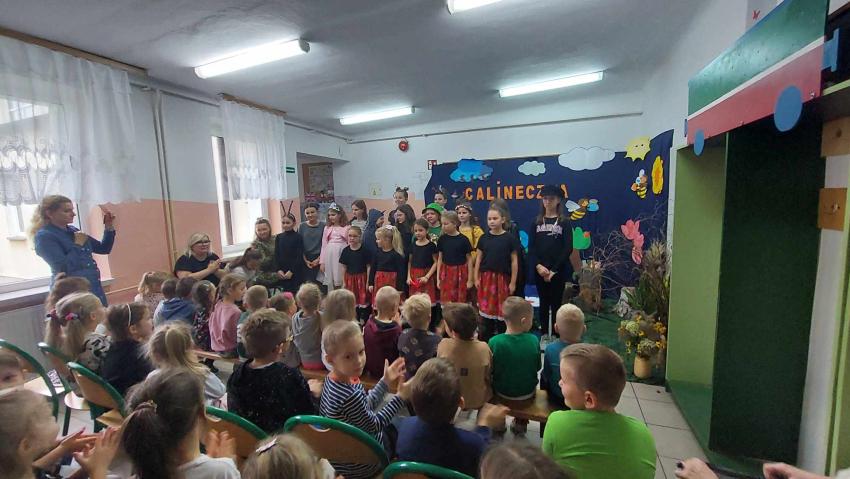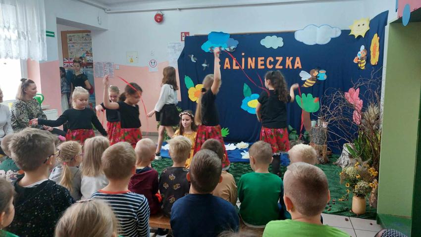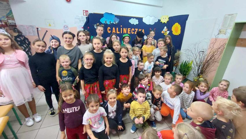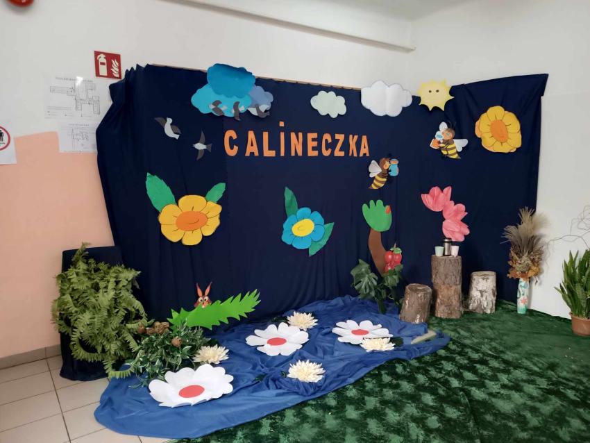 Dzieci z naszego przedszkola dostały zaproszenie na spektakl ?Calineczka?. Przedstawienie przygotowały dzieci z kółka aktorskiego Szkoły Podstawowej im. A. Chodyńskiego w Cekowie - Kolonii. Pod przewodnictwem pani Izabeli Skoniecznej - Przybył młodzi aktorzy przygotowali piękną scenerię, kostiumy, charakteryzację. Dzieci z wypiekami na twarzy oglądały interpretację baśni. Aktorzy dostali gromkie brawa. Serdecznie dziękujemy za zaproszenie i docaniamy trud włożony w przygotowanie tak pięknego przedstawienia.