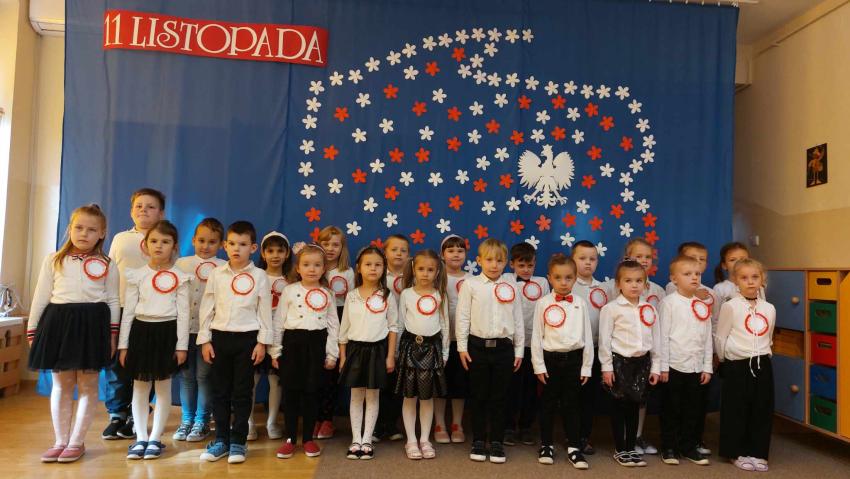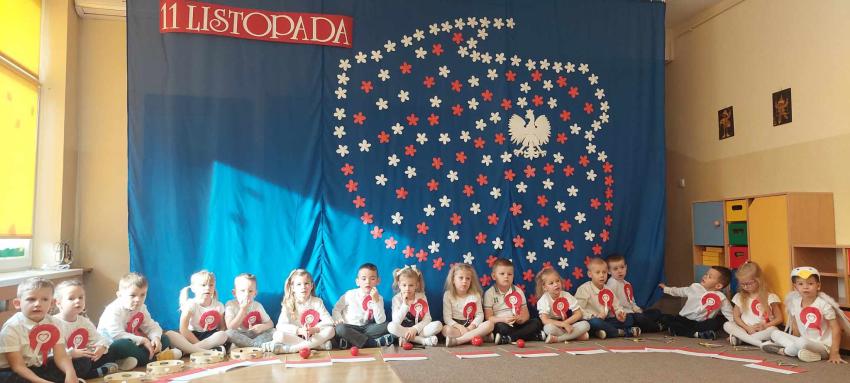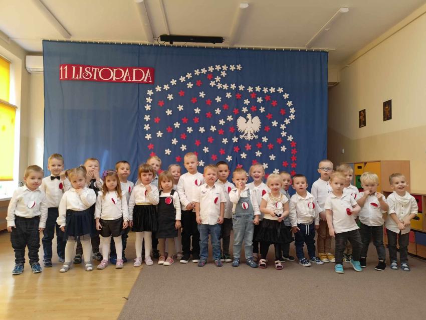W przeddzień Święta Niepodległości dzieci z naszego przedszkola zebrały się, aby obejrzeć uroczystą akademię oraz wspólnie zaśpiewać hymn Polski. Akademię przygotowały dzieci z grupy Gumisie.