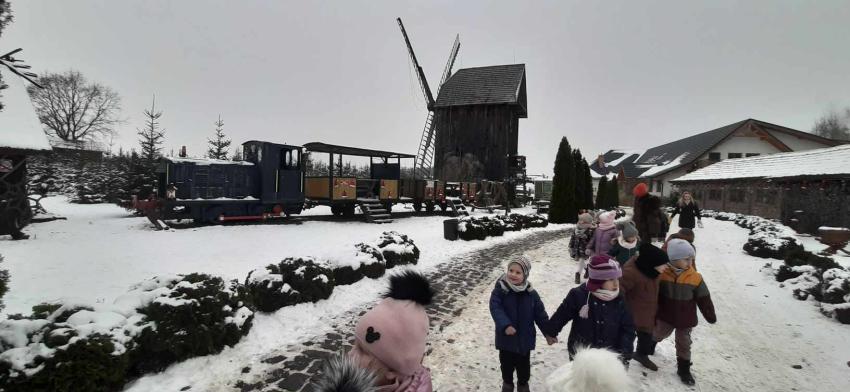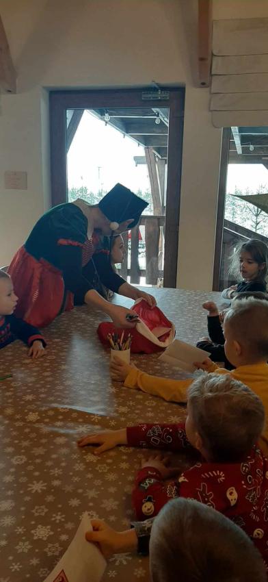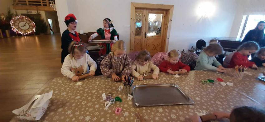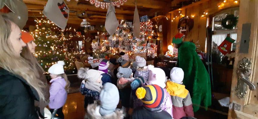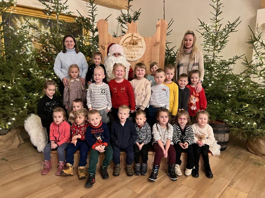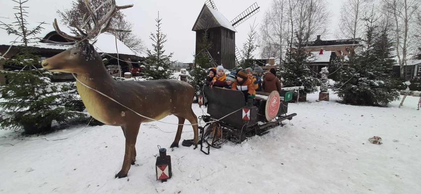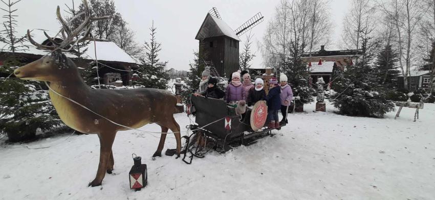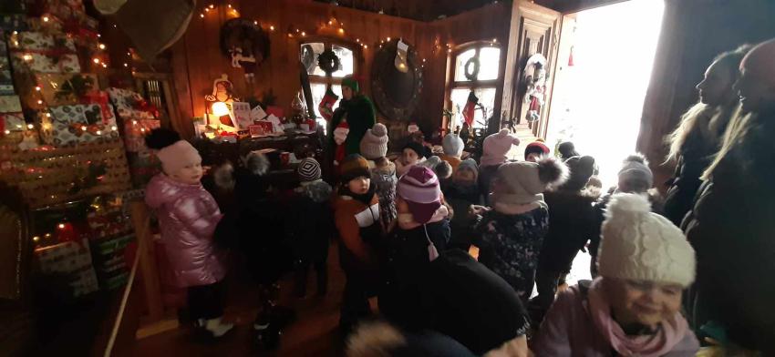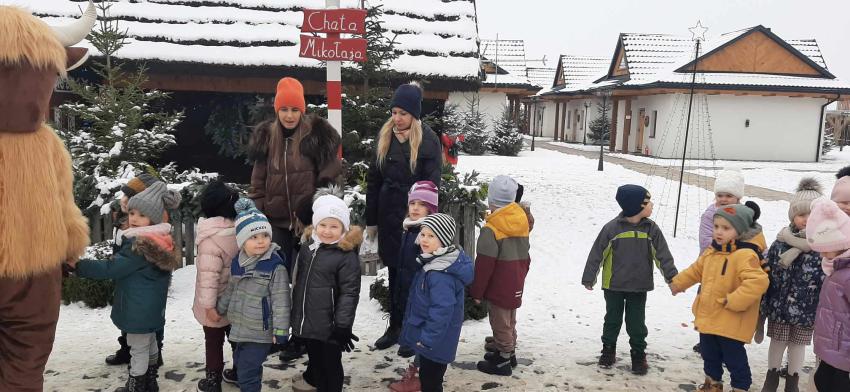 Dzieci z grupy Krasnale z okazji Mikołajek odwiedziły Świetego Mikołaja w jego Wiosce w Skansenie Bicz. Na miejscu przywitały ich Elfy, Bałwanki i Śnieżynki. Zwiedzanie rozpoczęły od domku Świętego Mikołaja, skąd Elfy zaprowadziły ich do pracowni, w której dzieci napisały lub narysowały swoje wymarzone prezenty. Kolejną atrakcją było robienie pierników, zabawy ruchowe, które umilały czas oczekiwania na upieczenie poerniczków. Punktem kulminacyjnym było spotkanie ze Świetym Mikołajem, wspólne tańce oraz kolędowanie. Na koniec dzieci miały okazje zobaczyć pocztę Mikołaja, dokąd trafiają wszystkie listy, a także zobaczyły zwierzęta  mieszkające w zagrodzie.