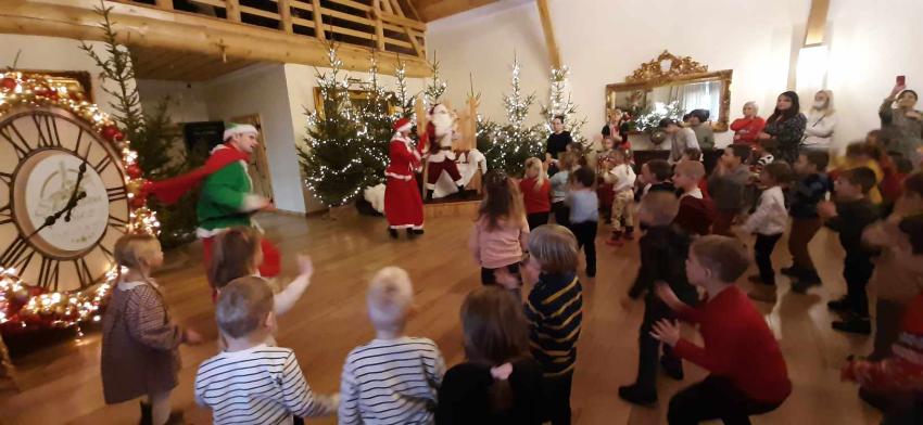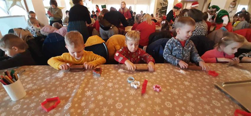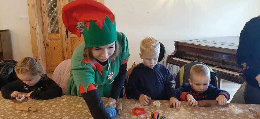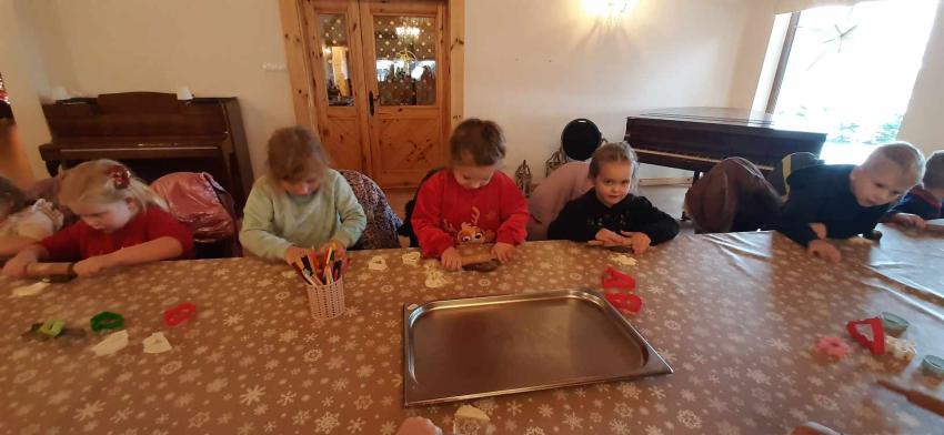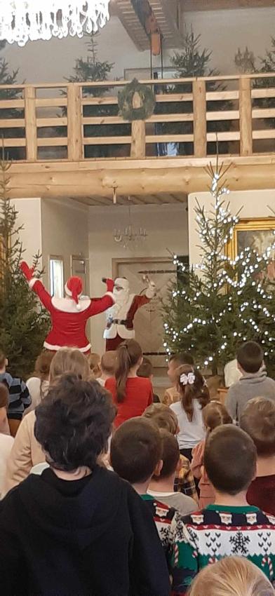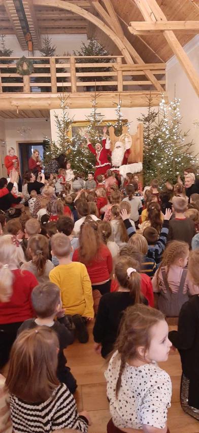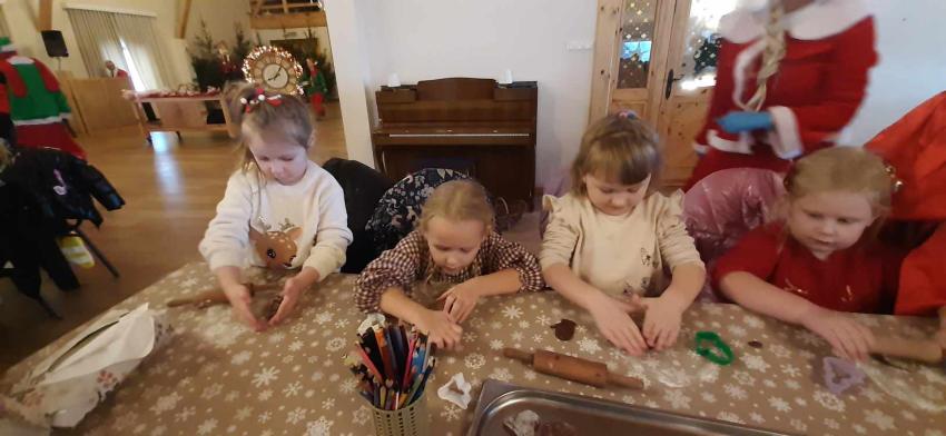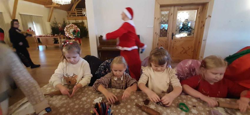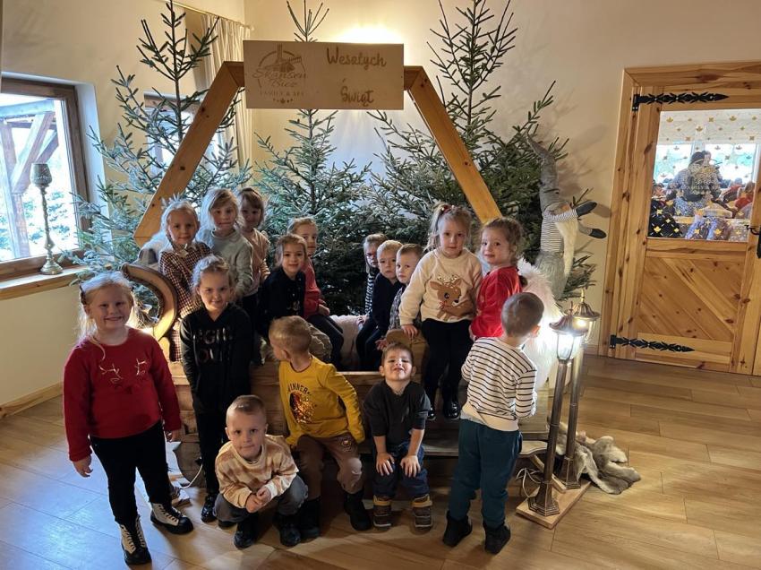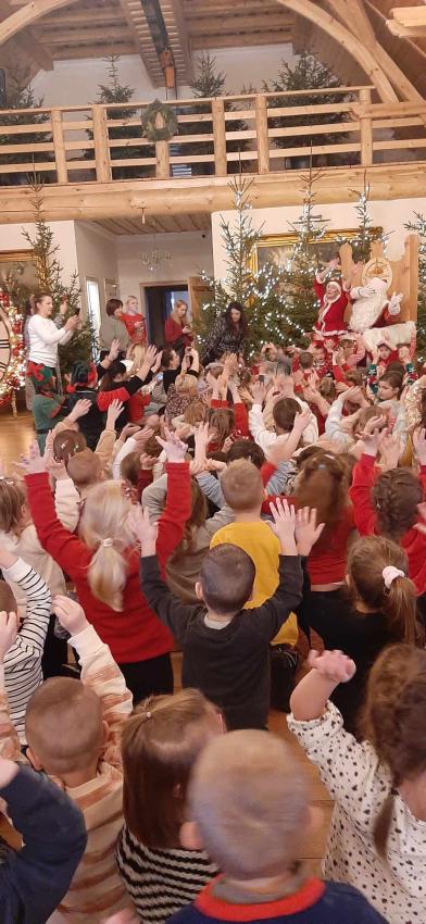 Dzieci z grupy Krasnale z okazji Mikołajek odwiedziły Świetego Mikołaja w jego Wiosce w Skansenie Bicz. Na miejscu przywitały ich Elfy, Bałwanki i Śnieżynki. Zwiedzanie rozpoczęły od domku Świętego Mikołaja, skąd Elfy zaprowadziły ich do pracowni, w której dzieci napisały lub narysowały swoje wymarzone prezenty. Kolejną atrakcją było robienie pierników, zabawy ruchowe, które umilały czas oczekiwania na upieczenie poerniczków. Punktem kulminacyjnym było spotkanie ze Świetym Mikołajem, wspólne tańce oraz kolędowanie. Na koniec dzieci miały okazje zobaczyć pocztę Mikołaja, dokąd trafiają wszystkie listy, a także zobaczyły zwierzęta  mieszkające w zagrodzie.