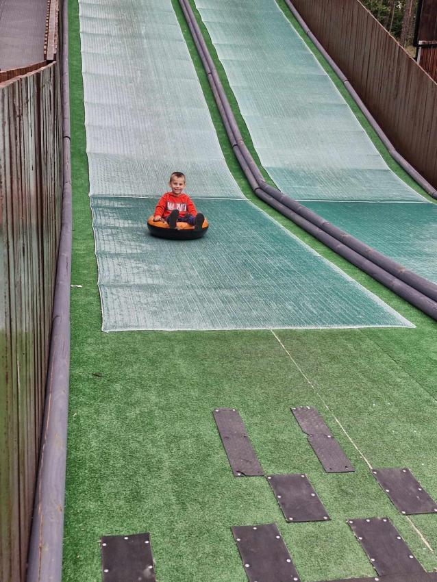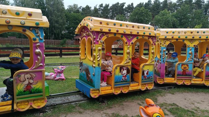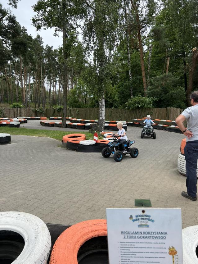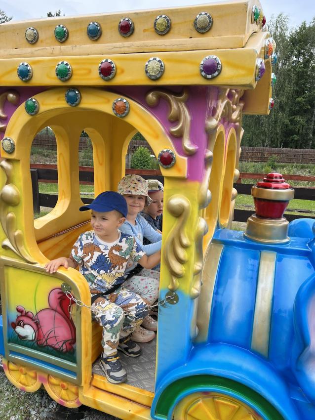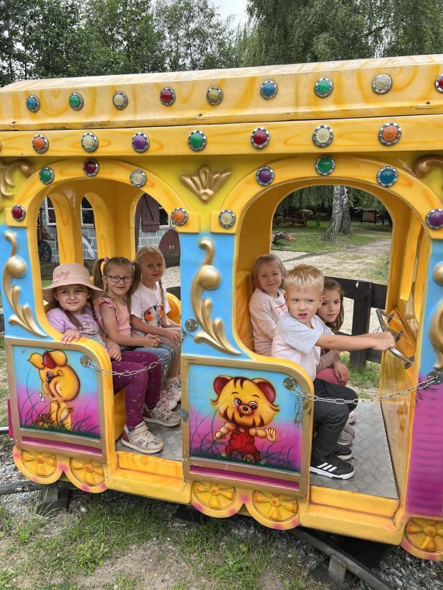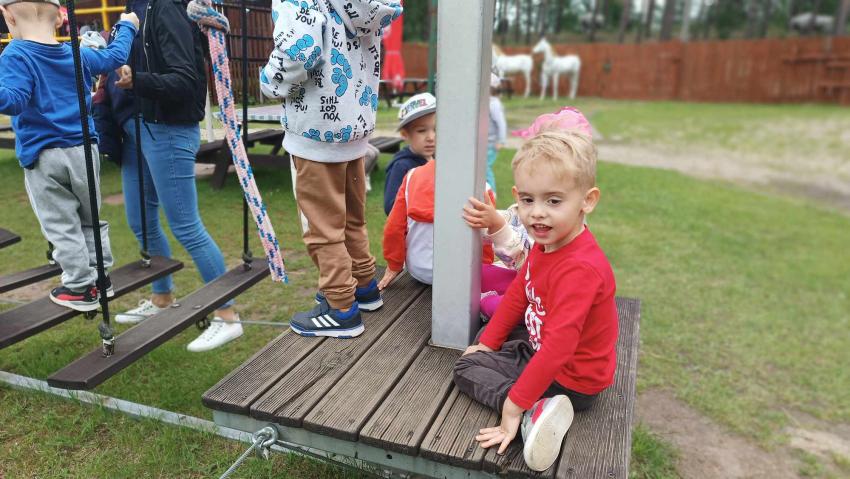 WYCIECZKA DO PRAKU ROZRYWKI GÓRECZNIK 12 czerwca dzieci z grupy Smerfy i Krasnale uczestniczyły w wycieczce do ?Rodzinnego Parku Przygód i Edukacji ? Górecznik?. Pogoda sprzyjała przebywaniu na powietrzu w tak pięknej okolicy. Główną atrakcją wycieczki dla dzieci była ścieżka edukacyjna zwierząt ?Nasza zagroda?. Znajdujące się tam ogromne owady i grzyby zrobiły na dzieciach duże wrażenie, podobnie jak dinozaury, które znajdowały się w parku przygód. Jednak największą atrakcją okazała się zabawa w Parku Rozrywki, gdzie dzieci bawiły się na zjeżdżalniach pontonowych, trampolinach, tyrolce, parku linowym i placu zabaw. Po wspaniałych atrakcjach dzieci udały się na obiadek. Po mile spędzonym czasie zadowolone i uśmiechnięte przedszkolaki wróciły do przedszkola