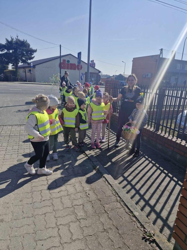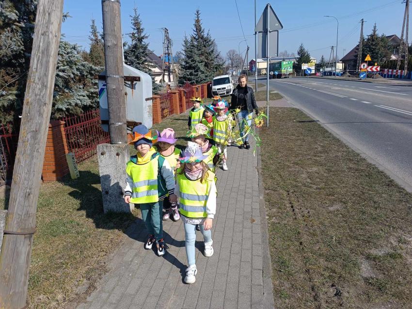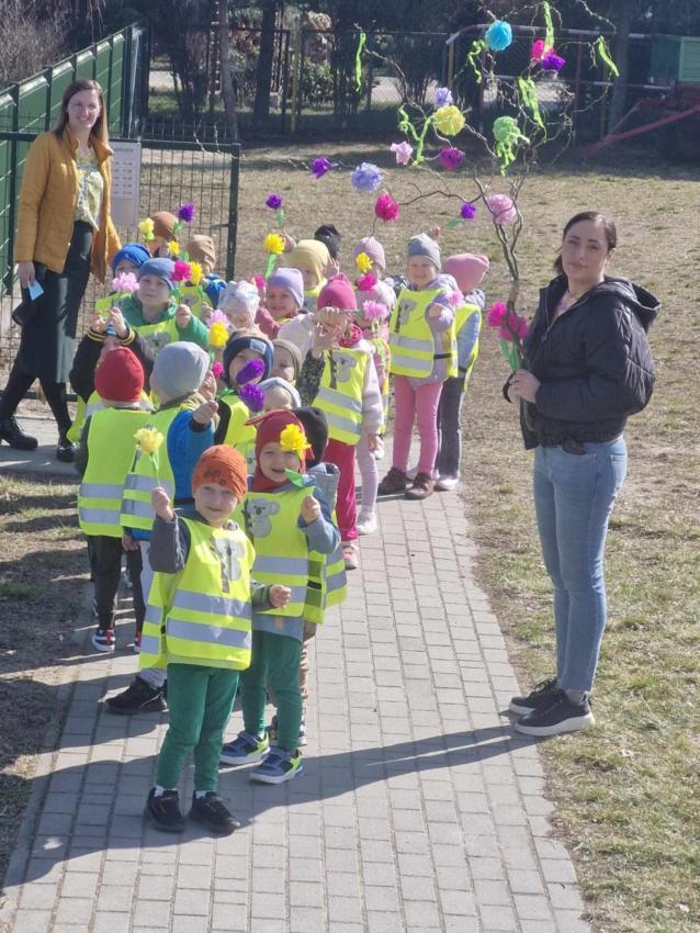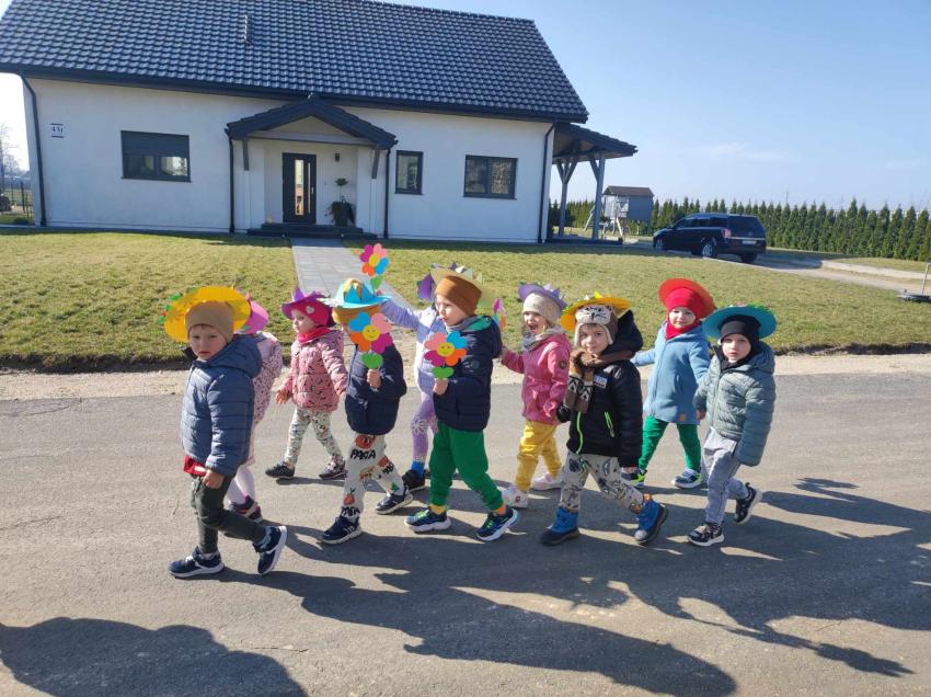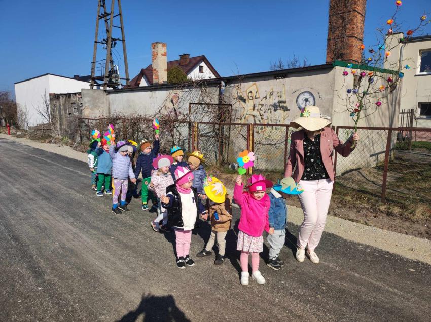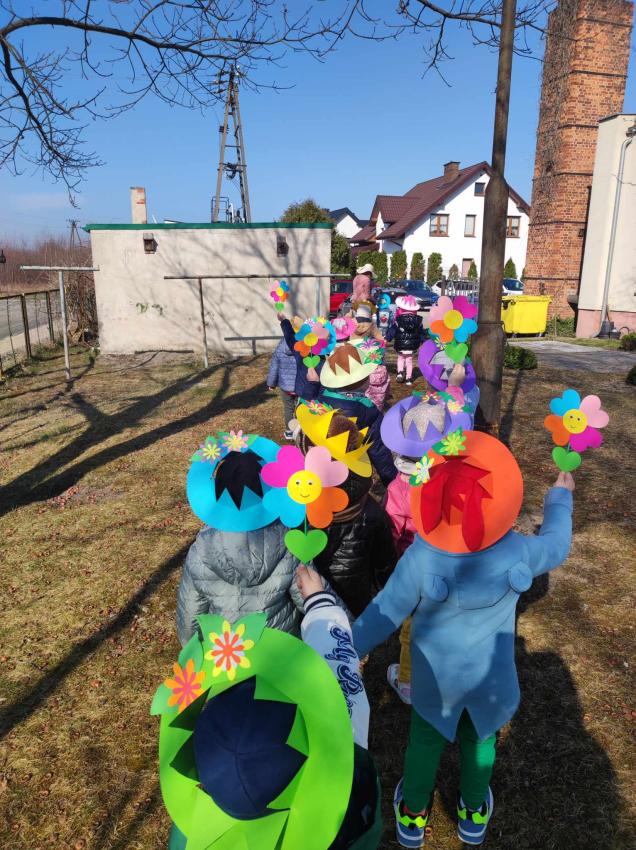 21 marca przedszkolaki wyruszyły w barwnym pochodzie z gaikiem - maikiem. Odwiedzały liczne instytucje, zakłady pracy, sklepy znajdujace się w pobliżu przedszkola. Dzieci witały w ten sposób wiosnę.