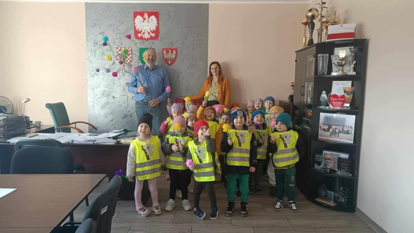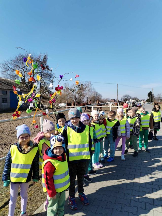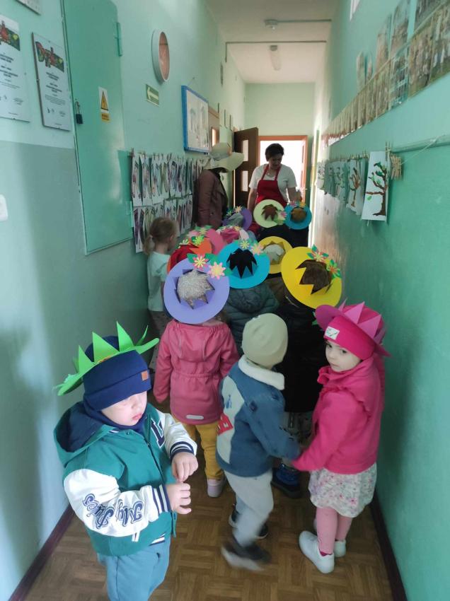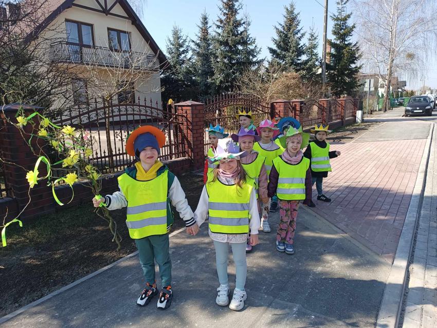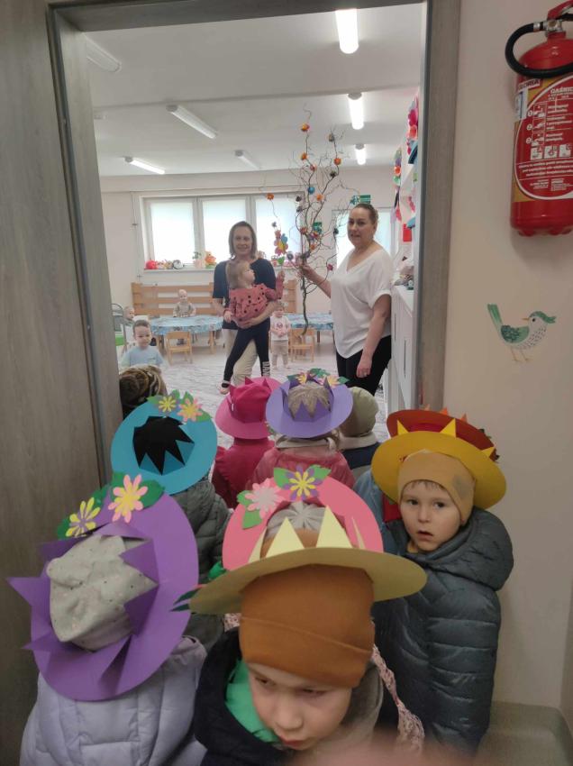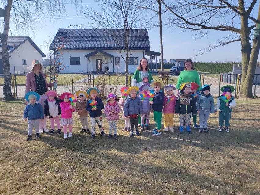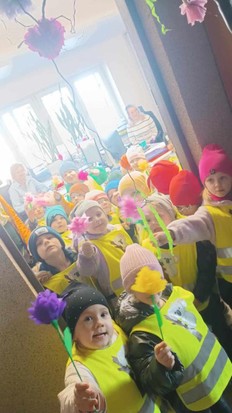 21 marca przedszkolaki wyruszyły w barwnym pochodzie z gaikiem - maikiem. Odwiedzały liczne instytucje, zakłady pracy, sklepy znajdujace się w pobliżu przedszkola. Dzieci witały w ten sposób wiosnę.