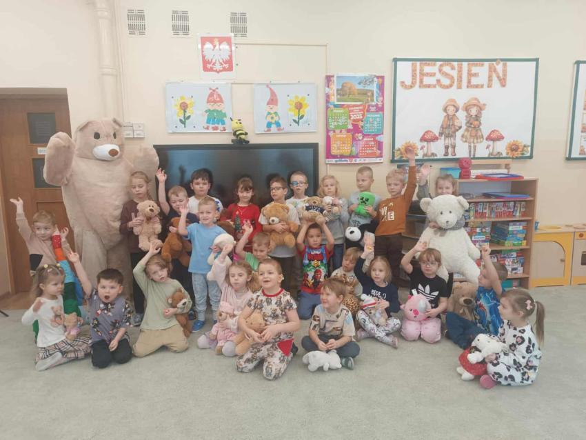 Jak co roku 25 listopada naszą placówkę odwiedziły najmilsi przyjaciele przedszkolaków - ich pluszowe misie. Tego dnia dzieci bawiły się z misiami przez cały dzień, pluszaki towarzyszyły im podczas codziennych rytuałów. Pojawił się także prawdziwy pluszowy Miś, który zapewniał o swojej dozgonnej przyjaźni z dziećmi, a także miał dla nich słodkie co nieco.