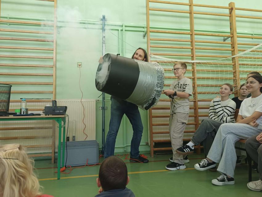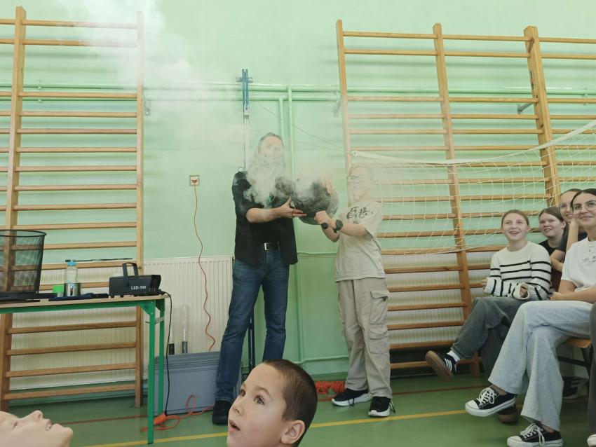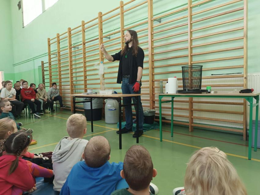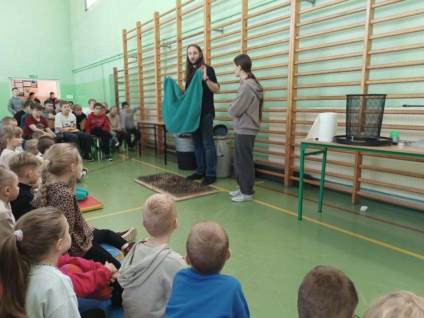 4 Listopada Grupy Tygryski i Skrzaty miały okazje uczestniczyć w nietypowej lekcji przyrody, zorganizowanej na sali gimnastycznej szkoły Podstawowej w Cekowie-Kolonii. Pod okiem doświadczonego fizyka , dzieci mogły dowiedzieć się w jaki sposób stworzyć powietrzną armatę i ogniste tornado. Zobaczyły również jak długo może się obracać dysk i jakie możliwości daje ciekły azot. Na zakończenie ogromnych wrażeń dał dzieciom pokaz podczas którego dziewczynka relaksowałą się leżąc na ostrych igłach. Wszystkie dzieci z zachwytem oklaskiwały każdy eksperyment.