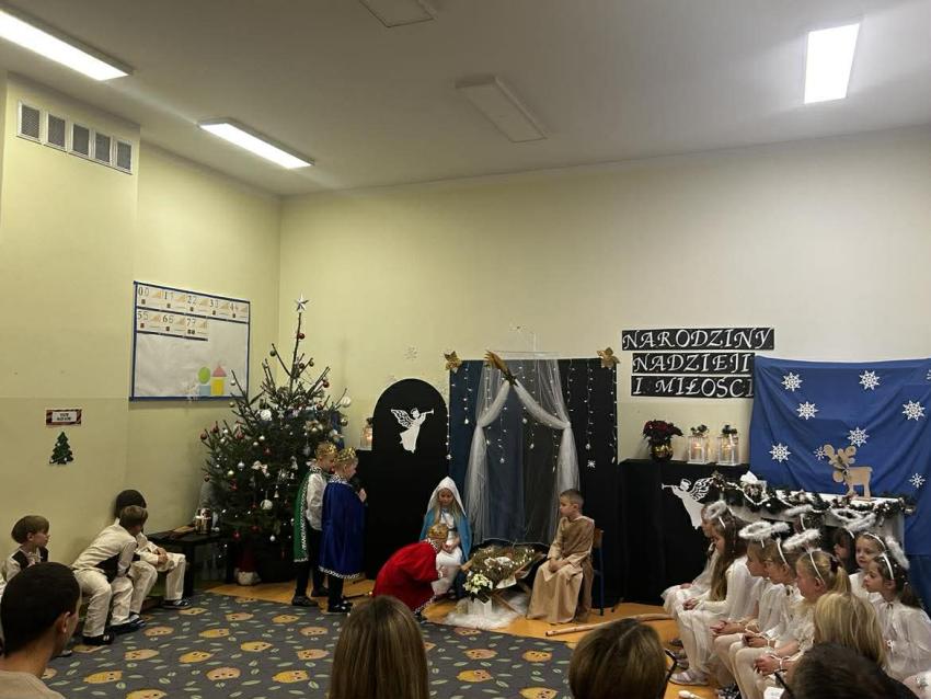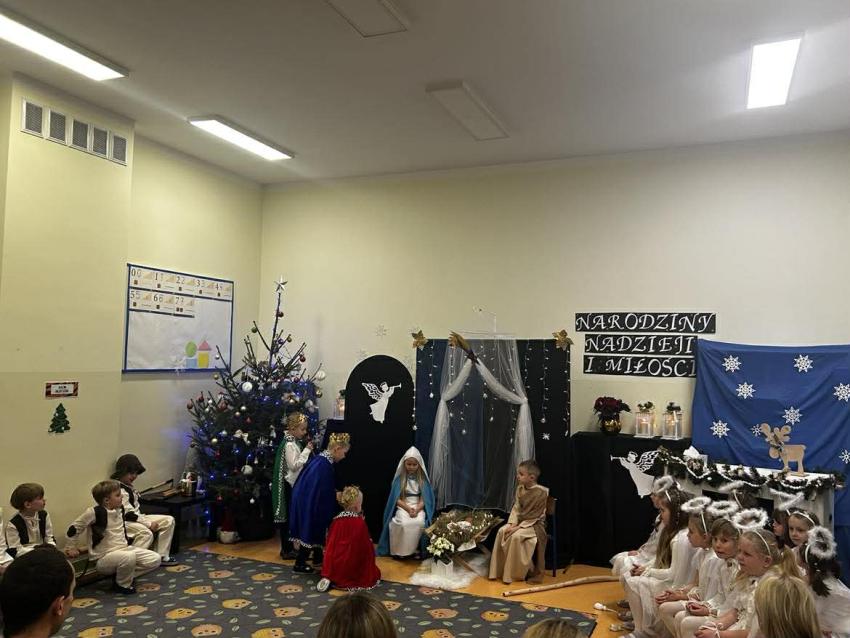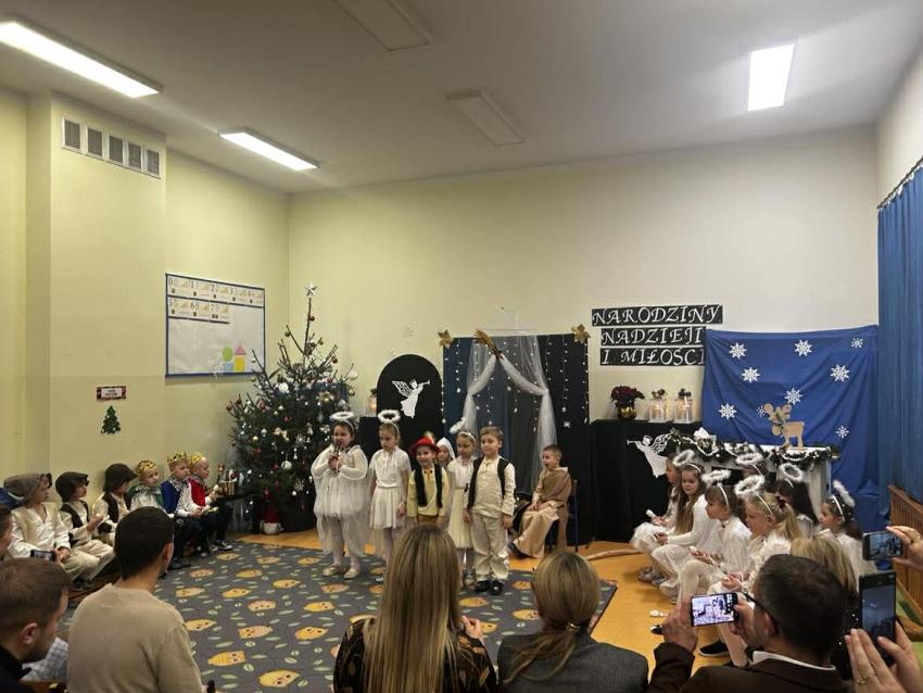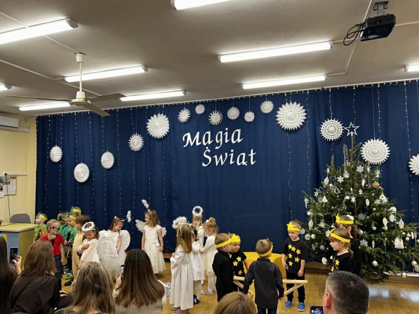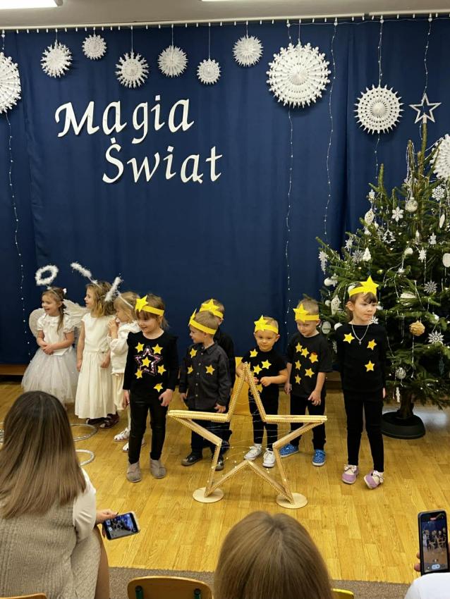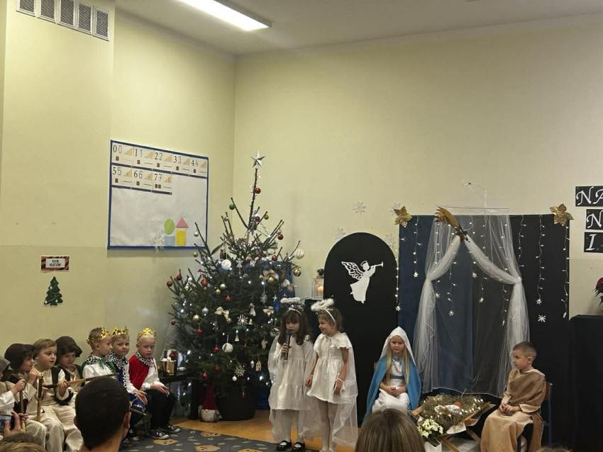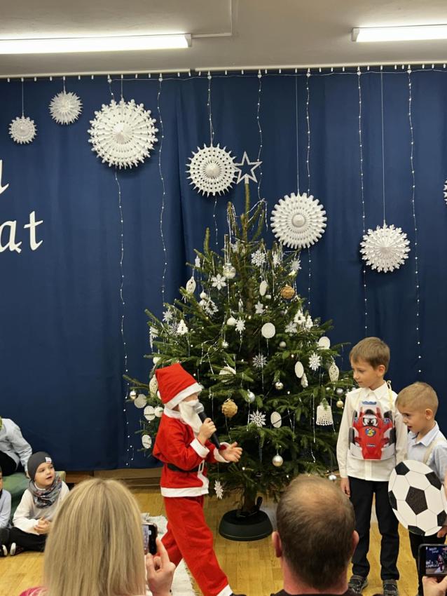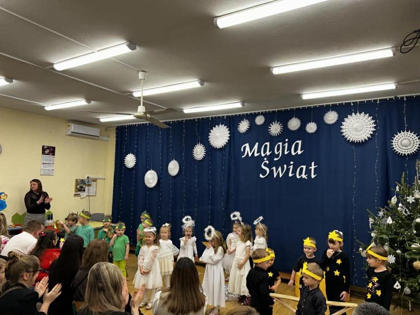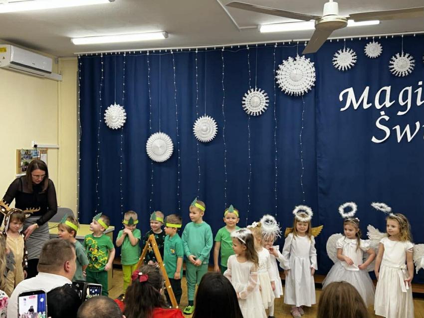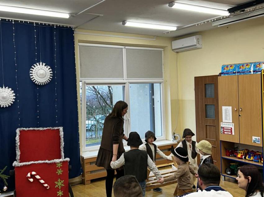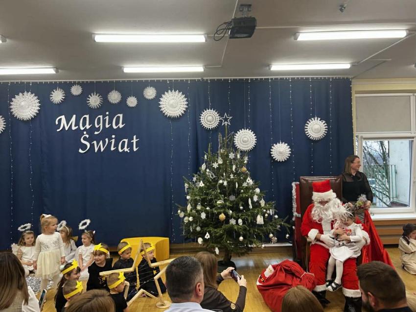 W przeddzień mikołajek, 5 grudnia w naszej placówce odbyły się spotkania wigilijne. To były piękne spotkania, pełne radości, magicznego, świątecznego nastroju, który uwieńczony był cudownymi występami przedszkolaków. Dzieci w swoich wsytępach starały się przekazać swoim najbli,zszym to, co jest najważniejsze - że święta to najpiękniejszy czas w roku. Najstarsze przedszkolaki przedstawiły jasełka. Wszystkie dzieci odwiedził też długo wyczekiwany gość - Świety Mikołaj, którego dzieci przywoływały pięknymi piosenkami, a w zamian dostały prezenty.