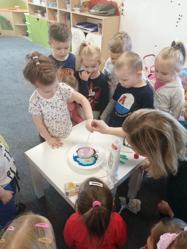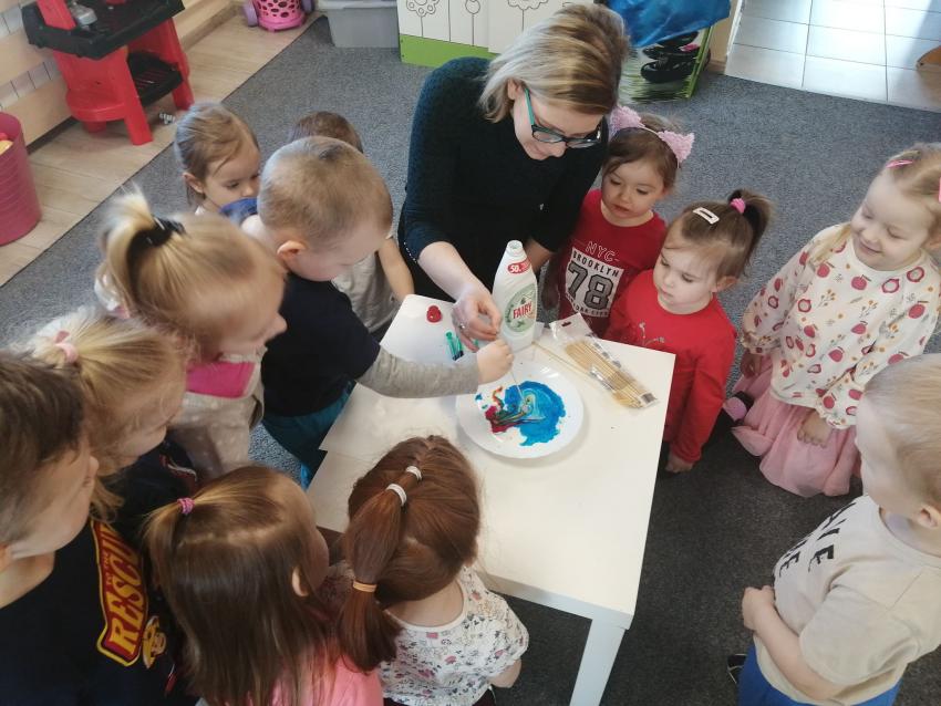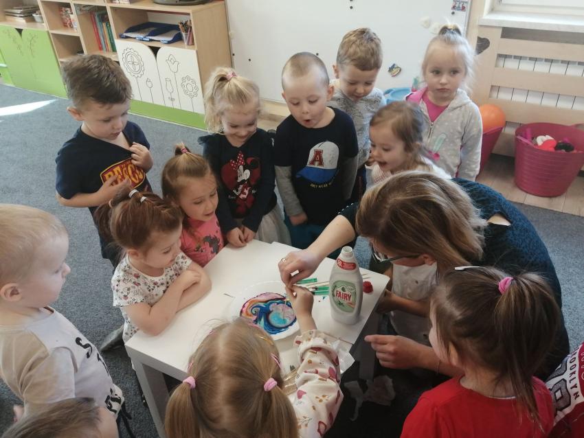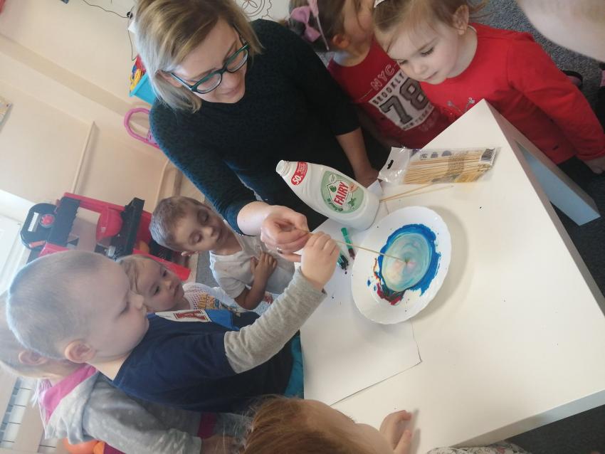 Smerfy doiły krowę i obserwowały zjawisko napięcia powierzchniowego w doświadczeniu z wykorzystaniem mleka