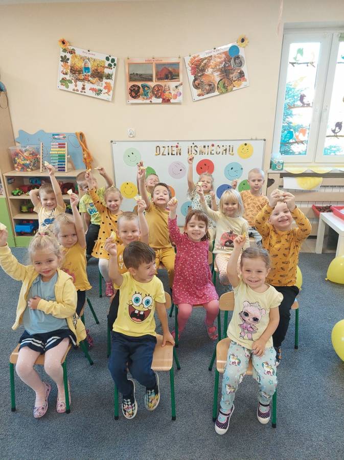 Dzień Uśmiechu jest doskonałą okazją do wyrażania radości i niesienia pomocy innym. Dzieci miały okazję przekonać się o tym poprzez różne zabawy i aktywności m.in. plastyczne, ruchowe i muzyczne. Uwieńczeniem okazał się "Test kwaśnej cytryny", gdzie sukcesem był uśmiech na twarzy dzieci.