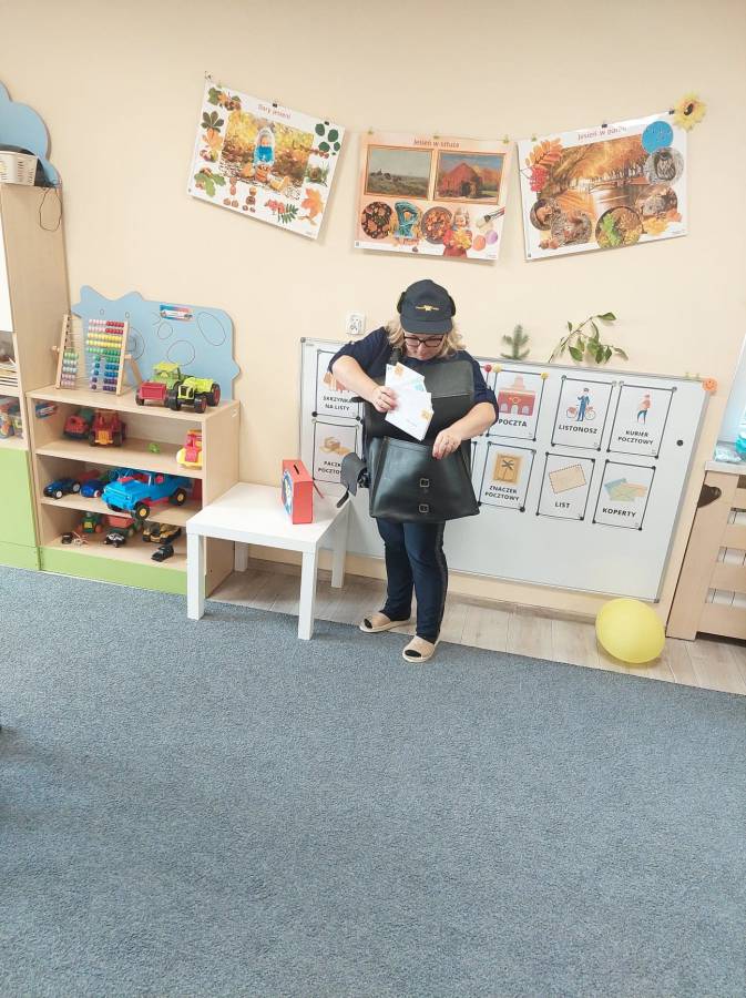 Tego dnia dzieci z grupy Krasnale poprzez różne aktywności miały możliwość zapoznania z pracą w owym urzędzie, obowiązkami listonosza, jego strojem służbowym oraz wysłały listy do najbliższych.