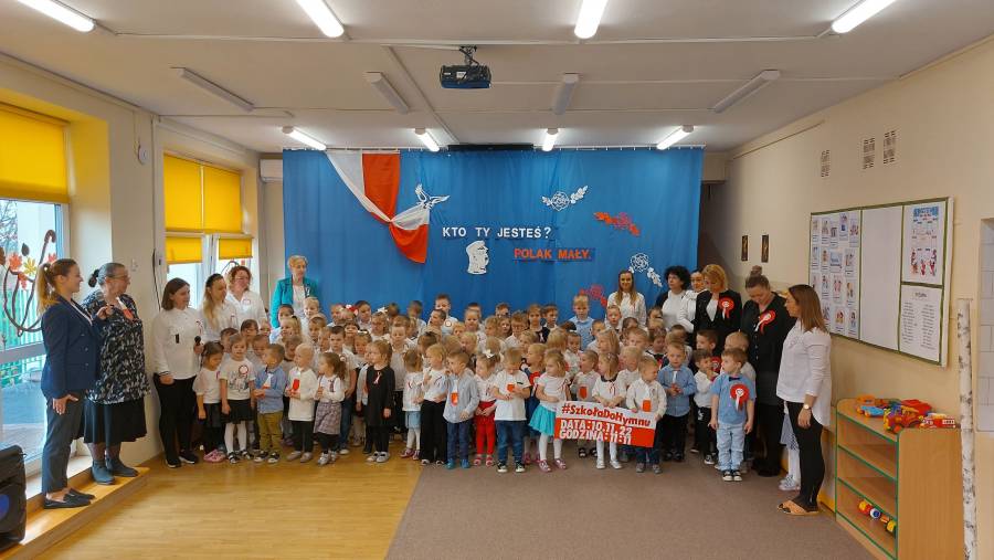 W przeddzień 11 listopada dzieci z naszego przedszkola uroczyście obchodziły święto Odzyskania Niepodległości. Historię sprzed lat przypomniały dzieci z grupy Tygryski, a na koniec wszystkie przedszkolaki wraz z paniami zaśpiewały ?Mazurek Dąbrowskiego?.