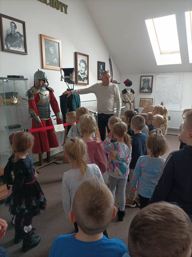 10 listopada dzieci z grupy Tygryski, Gumisie oraz Skrzaty wybrały się do Izby Tradycji w Urzędzie Gminy Ceków. Na miejscu przedszkolaków przywitał pan Janusz Nowak, który oprowadził zgromadzonych po Izbie Tradycji. Opowiadał ciekawe historie o eksponatach znalezionych na terenie naszej gminy oraz o mieszkańcach gminy, którzy uczestniczyli w walkach o niepodległość naszego kraju. Dzieci miały okazję przyjrzeć się oryginalnym pamiątkom, artefaktom z odległej przeszłości a także replikom oraz  oryginalnym mundurom żołnierzy  z okresów różnych wojen.