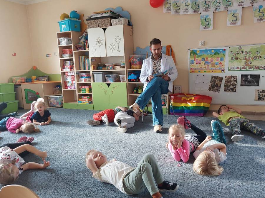 W piątek, 18 listopada  nasze przedszkole odwiedził niecodzienny gość, a mianowicie doktor Łukasz Durajski, lekarz znany m. in. z programu ?Pogromcy medycznych mitów? TVN Style, ?Bitwa o dom?, wielokrotnie występował w programie ?Pytanie na śniadanie?. Pan Łukasz jest lekarzem specjalizującym się w dziedzinie pediatrii. Odwiedził naszą placówkę, by opowiedzieć dzieciom o swojej pracy, zachęcić ich do pokonywania strachu przed wizytą w gabinecie lekarskim. Dzieci z ciekawością słuchały pana doktora, poznały narzędzia jego pracy, dowiedziały się, jak należy zachowywać się podczas wizyty w gabinecie lekarskim, co trzeba robić, żeby być zdrowym. Pan Łukasz poświęcił dzieciom wiele swojego cennego czasu, zjadł z nimi wspólny posiłek, cierpliwie odpowiadał na zadawane przez dzieci (oraz pracowników) pytania. Serdecznie dziękujemy za wizytę, życzymy pomyślności i zapraszamy na kolejne spotkania :)