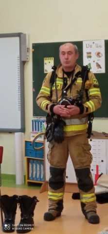 23 listopada w przedszkolu gościliśmy tatę Julki, pana Adriana Żabierka, który jest strażakiem z Ochotniczej Straży Pożarnej w Kaliszu. Nasz gość w ciekawy sposób przybliżył przedszkolakom specyfikę pracy strażaka jednocześnie prezentując strój ( specjalny i koszarowy) i podręczny sprzęt. W trakcie spotkania dzieci dowiedziały się, że praca strażaka nie polega tylko na gaszeniu pożarów, ale również na udzielaniu pomocy podczas wypadków samochodowych, oraz asyście podczas różnych akcji. Tato Julki zapoznał Tygryski z sytuacjami, w których należy wezwać straż pożarną, z zasadami prawidłowego zachowania się podczas pożaru, oraz przypomnieli numery alarmowe do straży, policji i na pogotowie. Dzieci z bliska mogły podziwiać sprzęt  jakim dysponują strażacy podczas swojej ciężkiej i odpowiedzialnej pracy. Wizyta strażaka utrwaliła wiedzę przedszkolaków w zakresie bezpieczeństwa, oraz zachęciła najmłodszych do służby w straży pożarnej.