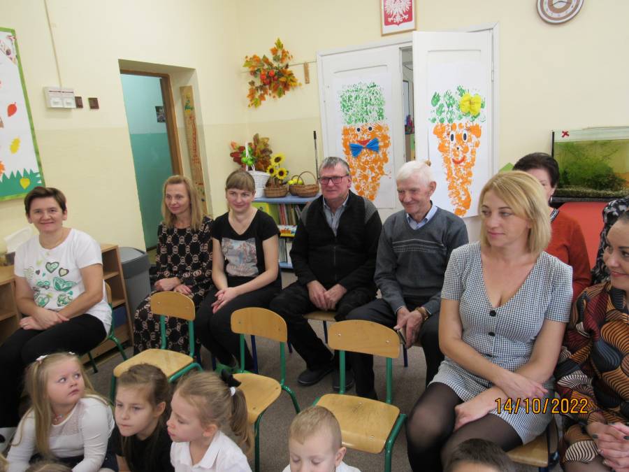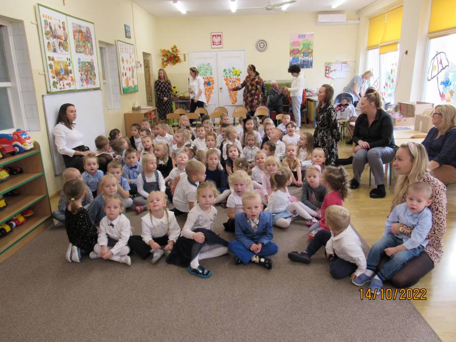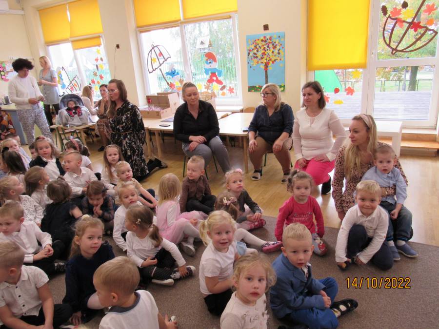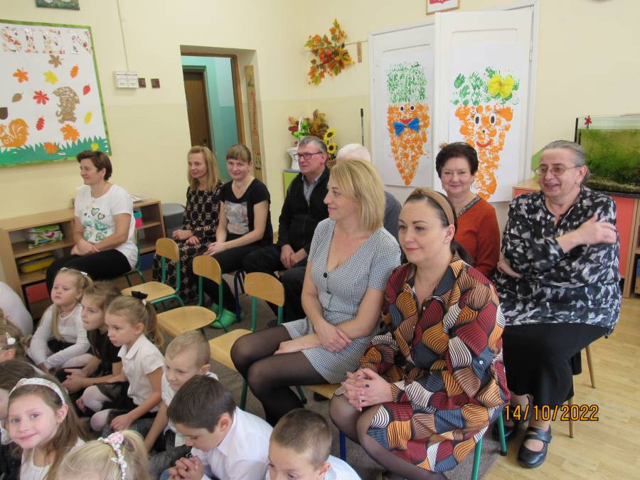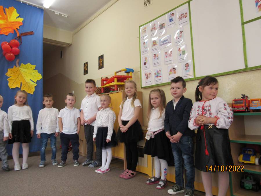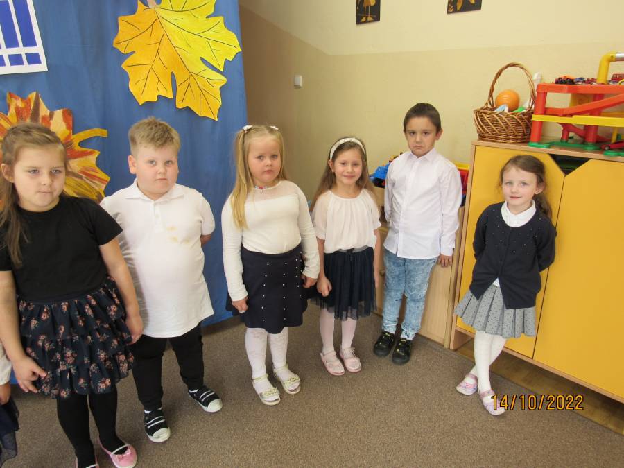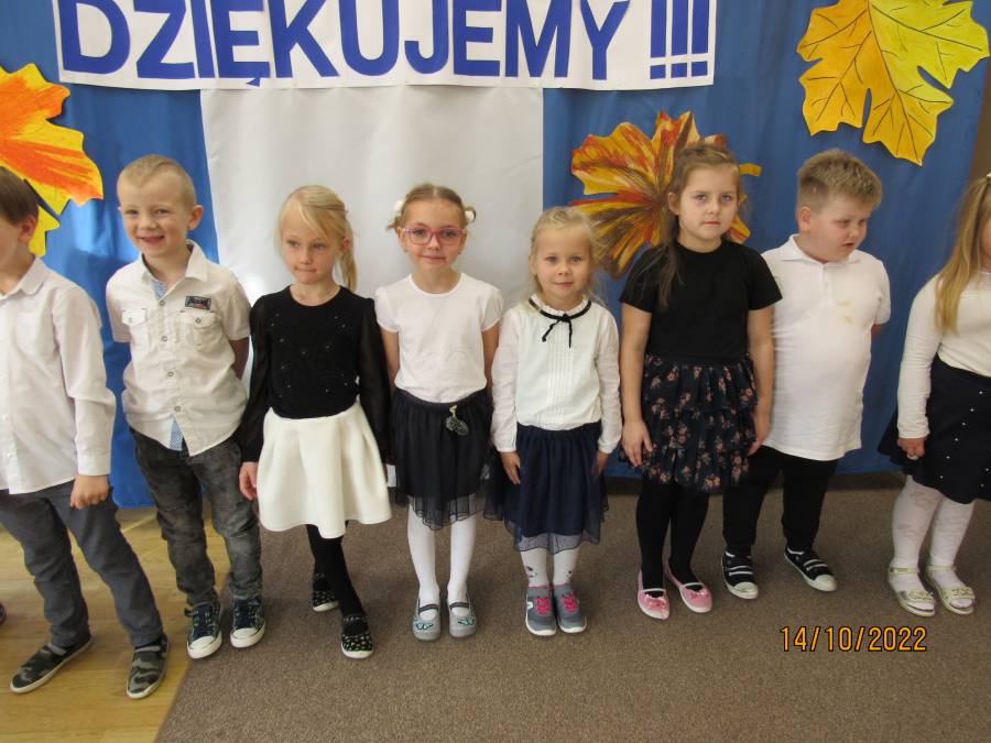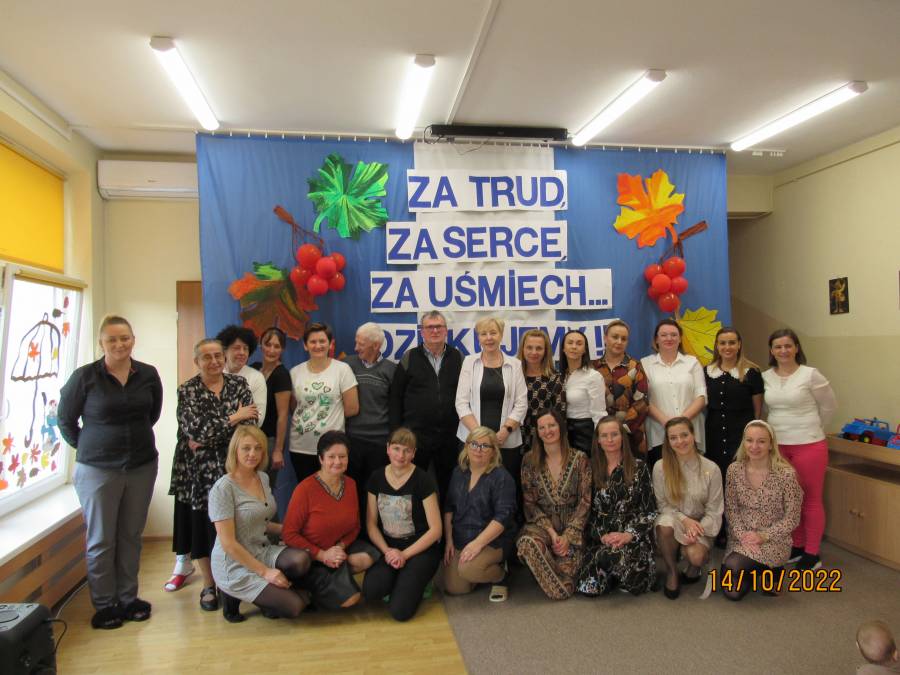 W naszym przedszkolu uroczystość z okazji Dnia Edukacji Narodowej odbyła się 14 października. Uczestniczyli w niej zaproszeni goście, pracownicy przedszkola, przedszkolaki ze wszystkich grup oraz przedstawiciele rodziców. Uroczystość rozpoczęła pani dyrektor, która powitała zebranych, złożyła wszystkim pracownikom życzenia. Podziękowała za codzienny trud, zaangażowanie, czujność a także za poświęcenie i troskę o dobro wychowanków i zaprosiła do obejrzenia programu artystycznego przygotowanego przez dzieci ze wszystkich grup. Przedszkolaki najpiękniej jak potrafiły podziękowały swoim paniom i wszystkim pracownikom za uśmiech, serce i poświęcenie.