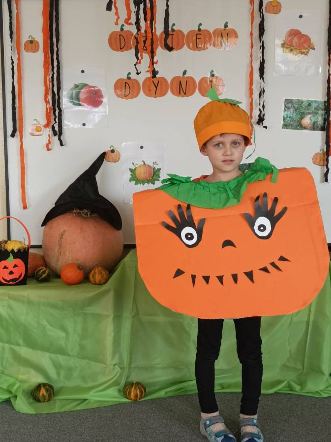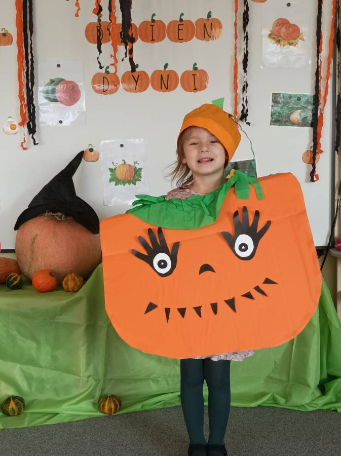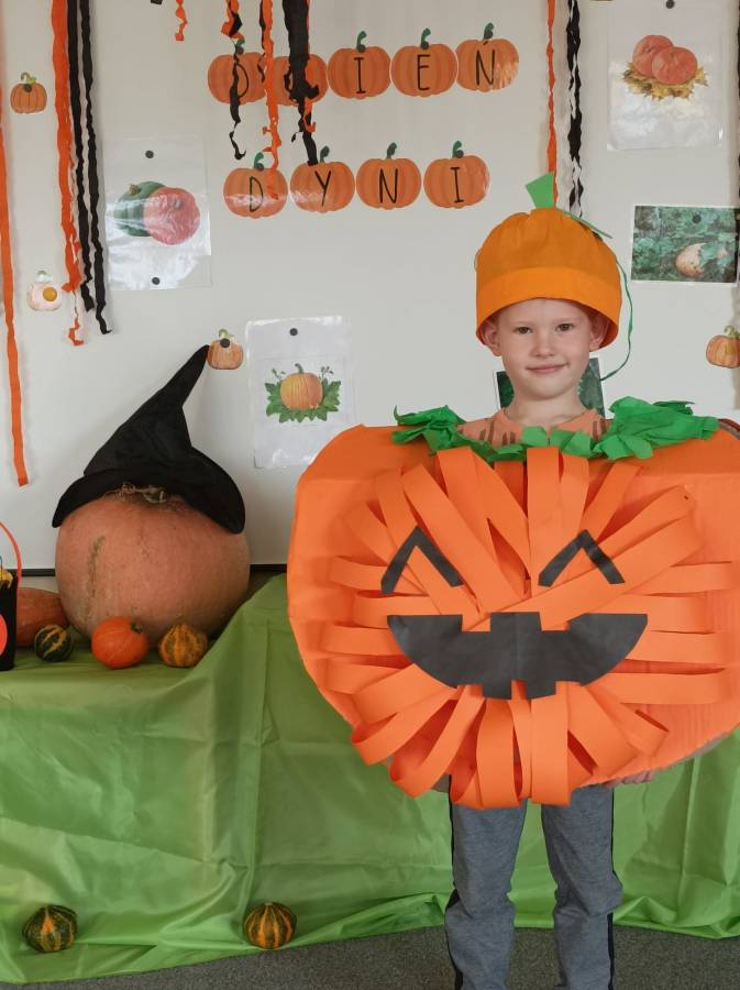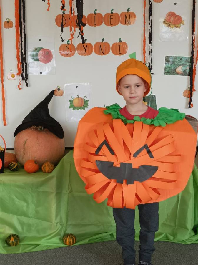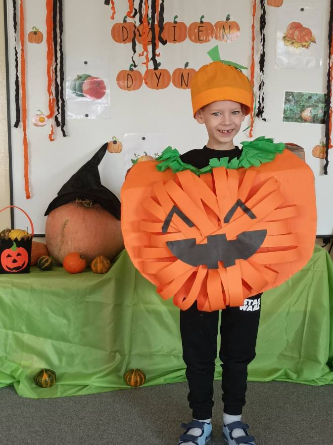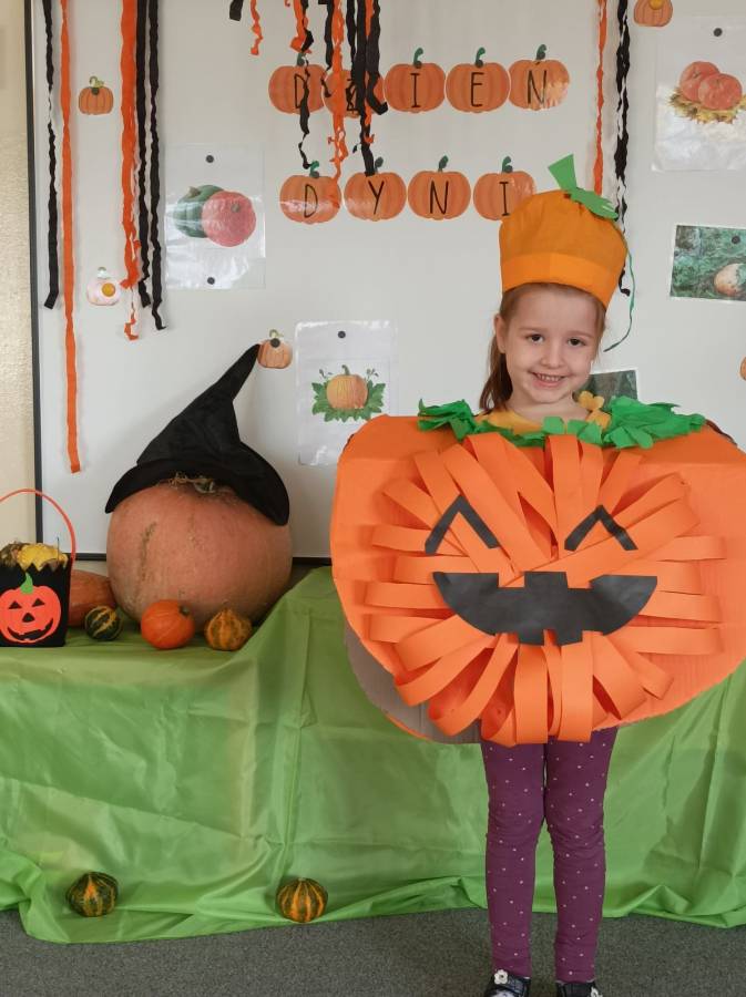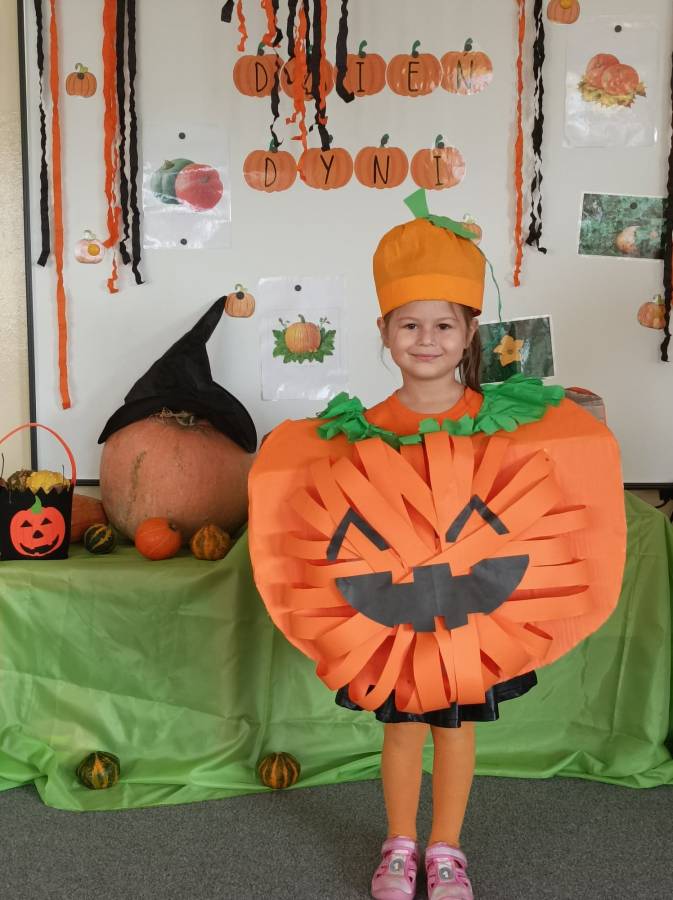 W poniedziałek 30 października od rana królował kolor pomarańczowy. Wszystko za sprawą gwiazdy tego dnia i królowej warzyw ? DYNI. Każdy przedszkolak miał na sobie pomarańczowy element ubrania, a niektórzy zaprezentowali dyniowe stroje - był to przyjemny początek tego wesołego dnia.