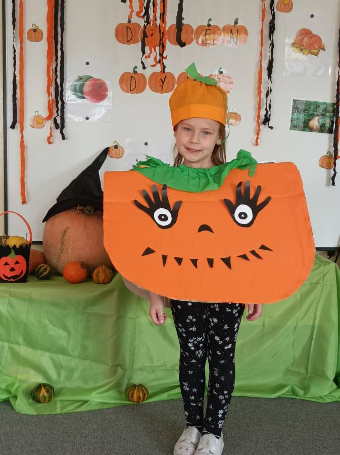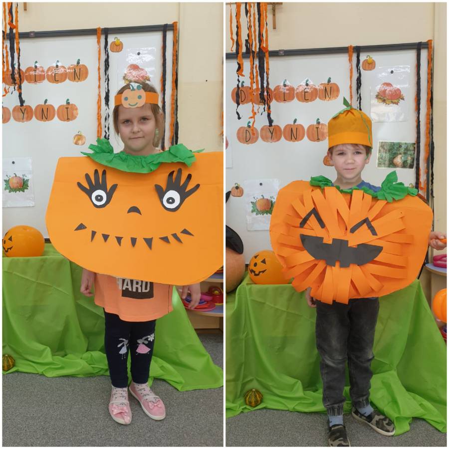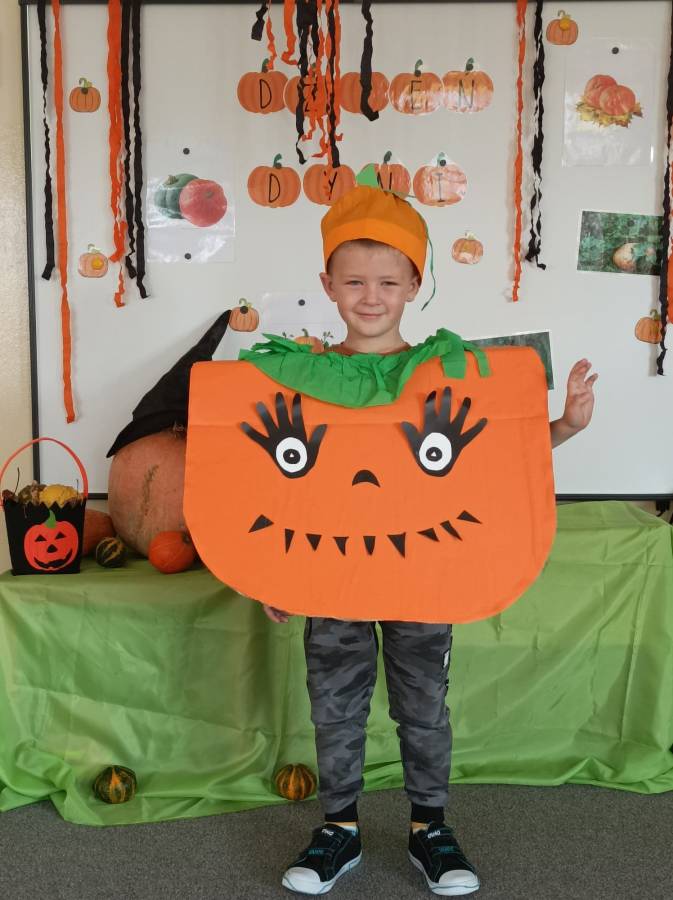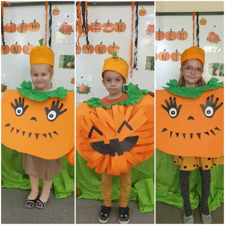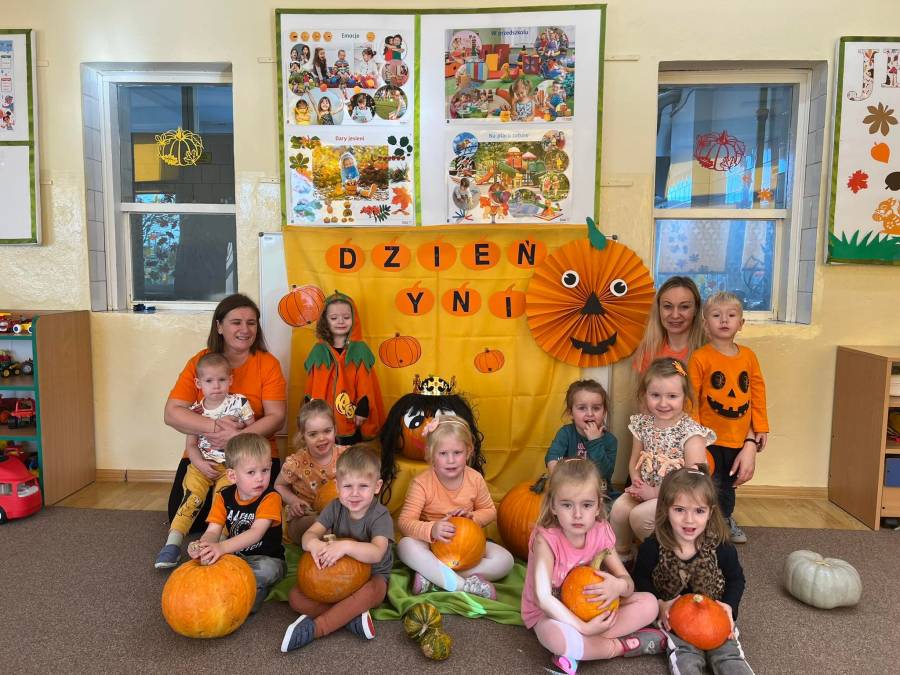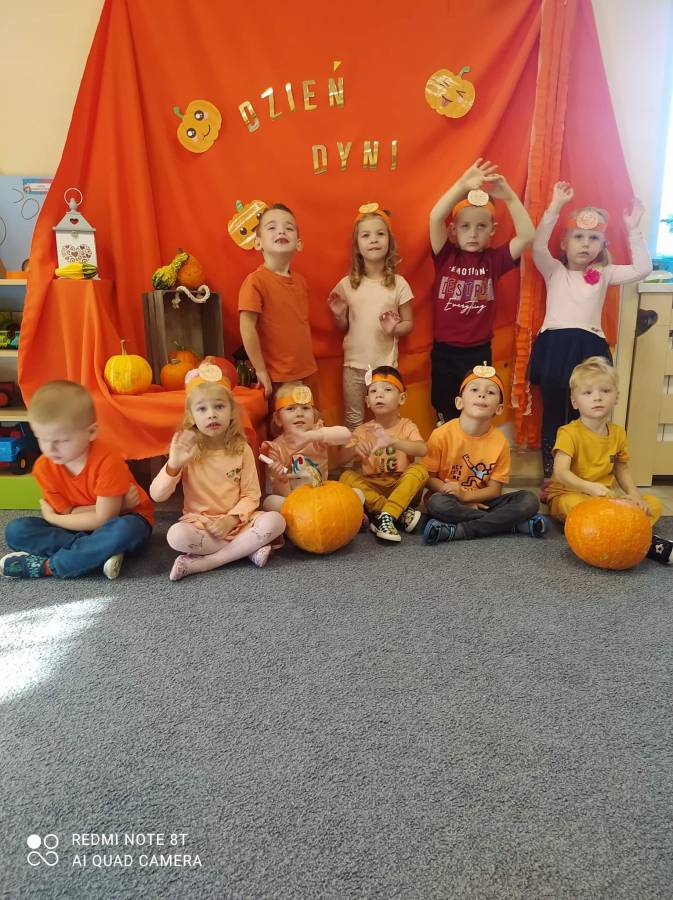 W poniedziałek 30 października od rana królował kolor pomarańczowy. Wszystko za sprawą gwiazdy tego dnia i królowej warzyw ? DYNI. Każdy przedszkolak miał na sobie pomarańczowy element ubrania, a niektórzy zaprezentowali dyniowe stroje - był to przyjemny początek tego wesołego dnia.