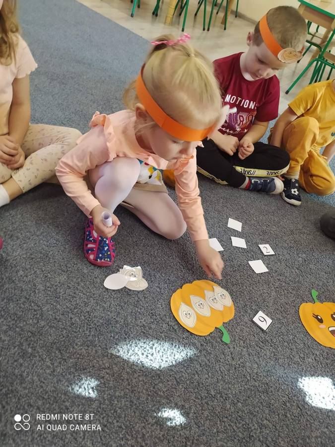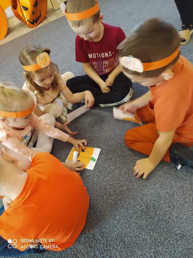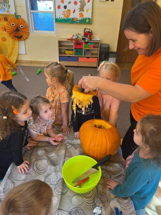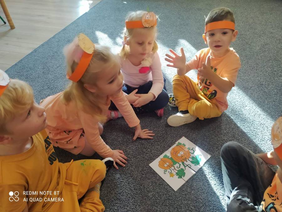 Zajęcia rozpoczęły się od wprowadzenia dzieci do tematu poprzez dyniowe powitanie. Następnie rozpoczęła się główna część zajęć, podczas których dzieci: