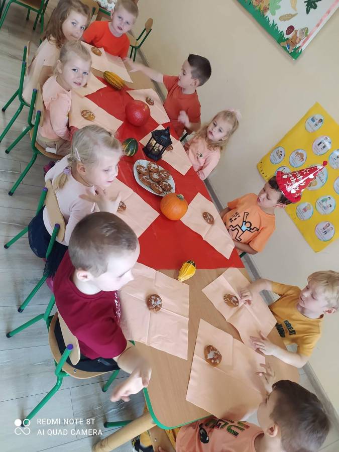 Nie mogło zabraknąć zabawy z dynią przy muzyce, a na obiad tego dnia podano zupę dyniową uwielbianą przez nasze przedszkolaki.