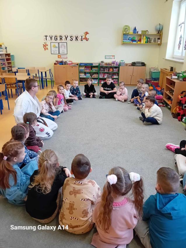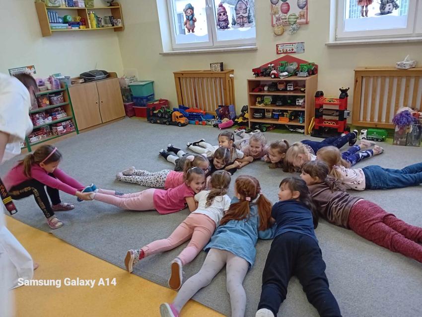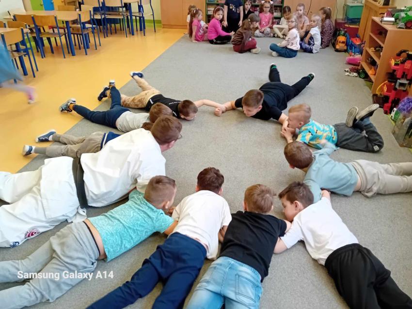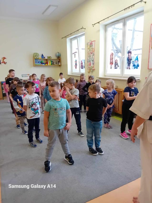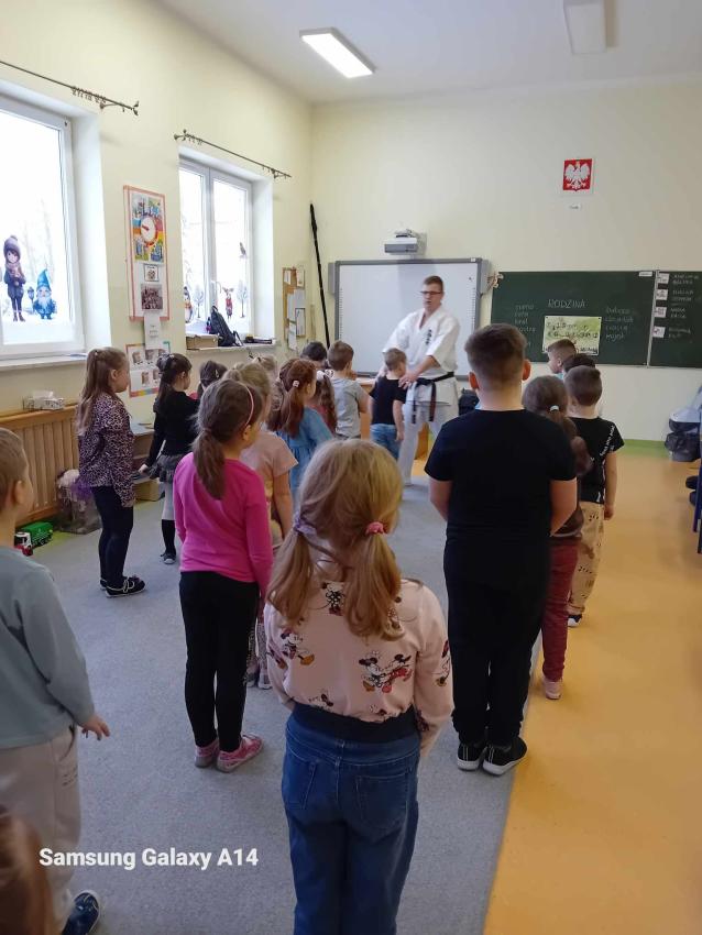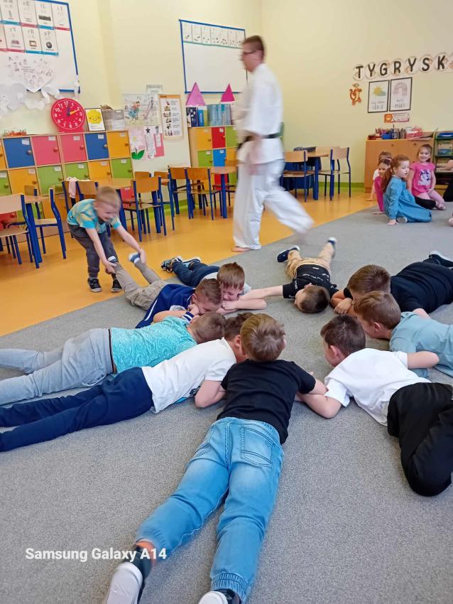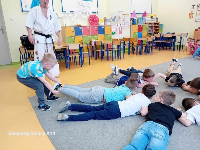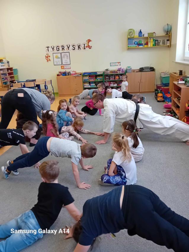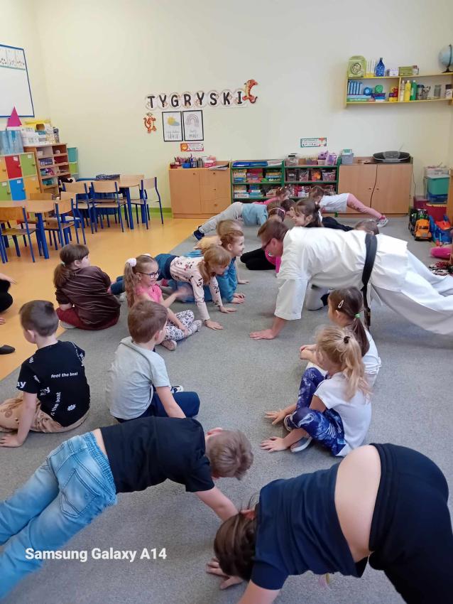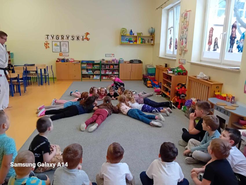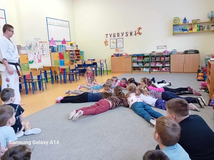 22 stycznia dzieci z grupy ?Tygryski? w ramach realizacji działań wspierających aktywność w zakresie rozwijania sprawności fizycznej i zdrowotnej, gościły pana Daniela Pakułę, trenera z Wielkopolskiego Klubu Karate Kyokushin w Malanowie. Dzieci dowiedziały się skąd wywodzi się karate, poznały podstawowe słowa w języku karateków, uczestniczyły w rozgrzewce i treningu, podczas którego mogły poczuć się choć przez chwilę karateką. Zajęcia były dla tygrysków wielką frajdą i wzbudziły wśród nich duże zainteresowanie.