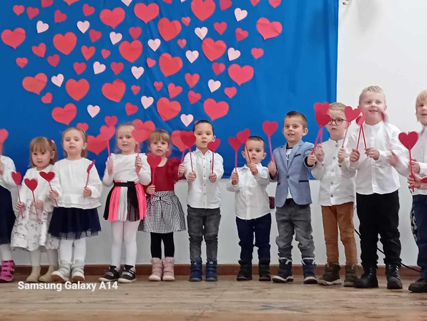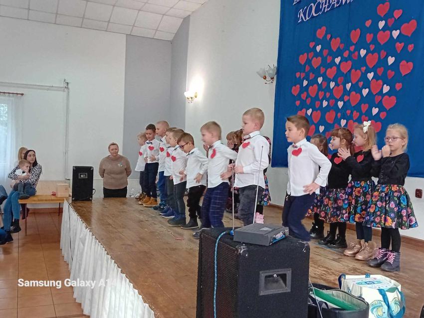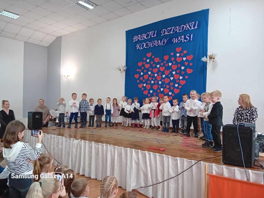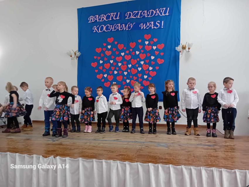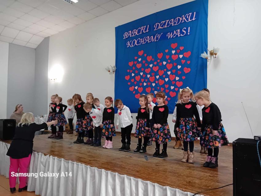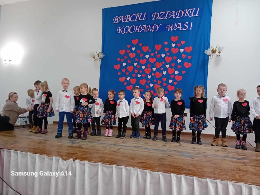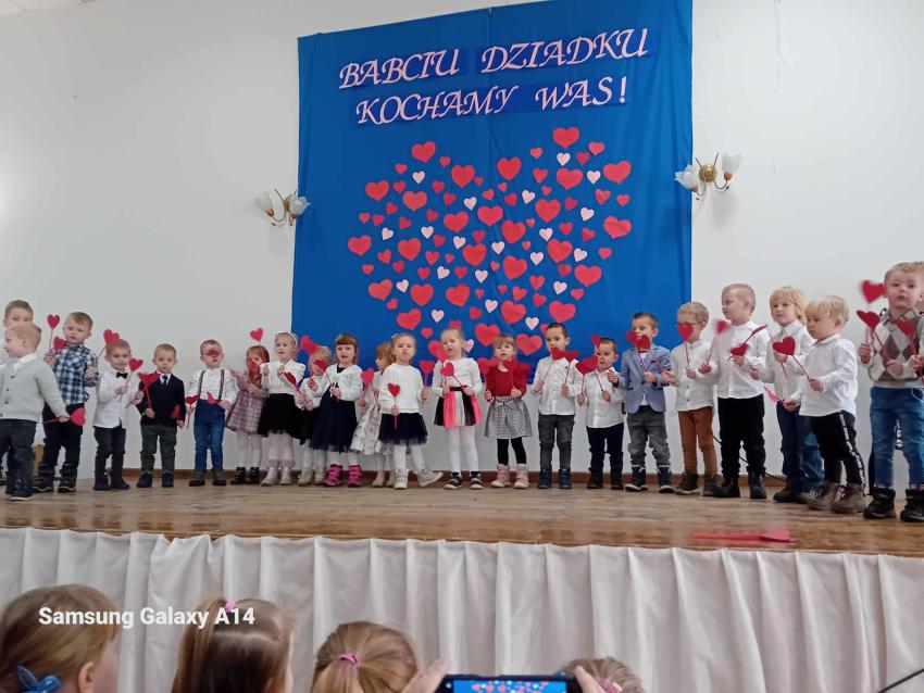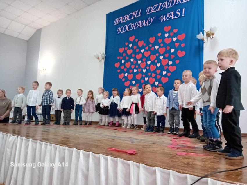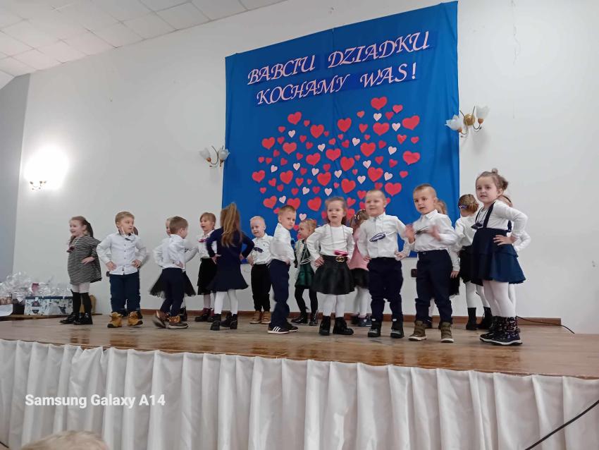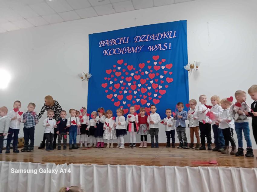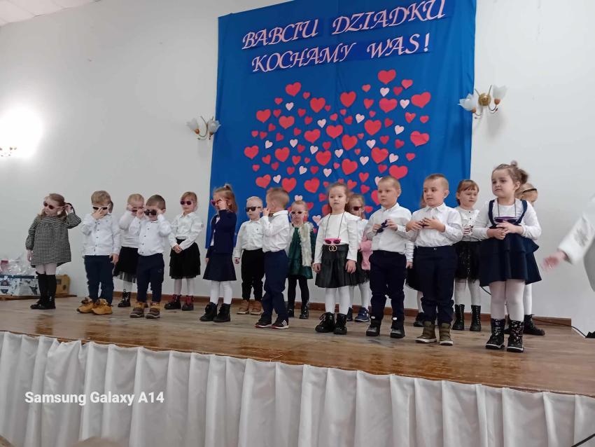 Babcia i Dziadek to słowa, którew każdemu kojarzą się z ciepłem, miłością i wszystkim, co dobre. Dlatego też 26 stycznia 2024 roku do sali OSP zawitało mnóstwo wspaniałych gości, a byli to Babcie i Dziadkowie naszych przedszkolaków. Razem uczciliśmy to wspaniałe i miłe świeto. Dzieci pod czujnym okiem wychowawczyń zaprezentowały wiersze, piosenki oraz tańce, które pilnie ćwiczyły na tą uroczystość. Starszaki zaprezentowały skecz ?Babcia i dziadek - historia prawdziwa?.