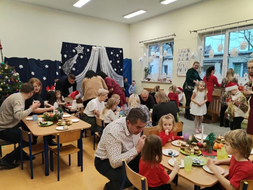 6 grudnia w naszym przedszkolu odbyły sie spotkania wigilijne. Dzieci przygotowały na te okazję świąteczne występy, podczas których pokazały swoje talenty taneczne, wokalne i recytatorskie. Nie od dzisiaj wiadomo, że dzieci w naszym przedszkolu są grzeczne przez cały rok, więc odwiedził je Święty Mikołaj z workiem pełnym prezentów. Po części artystycznej rodzice wraz z dziećmi mogli zasiąść do wspólnego stołu, by cieszyć się wspólnie spędzonym czasem.